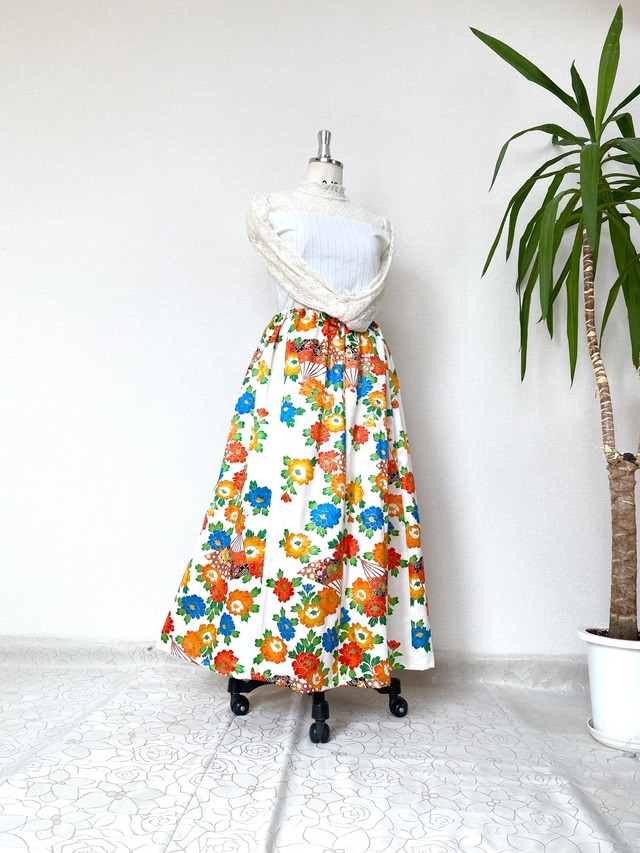 大人可愛いセレブ着物スカートフリーサイズ着物リメイクウエストゴムロングスカートフリーサイズ送料込みハンドメイドNO.6160