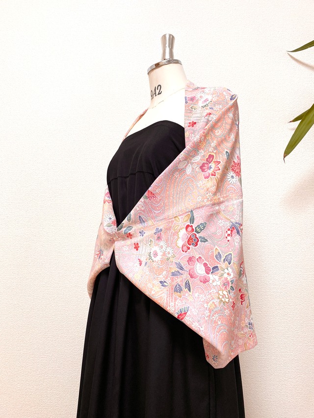 着物リメイク羽織物ストールショールフリーサイズ大人可愛いストール送料無料ハンドメイド着物リメイク羽織物NO.3062
