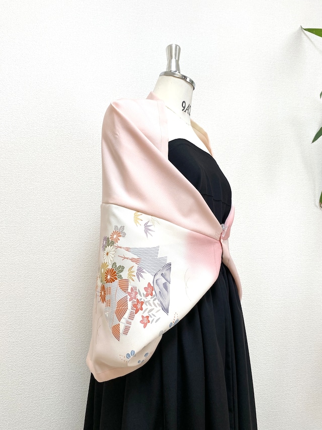 大人可愛い着物リメイク羽織物ストールショールカーディガンフリーサイズストール送料無料ハンドメイドNO.5208