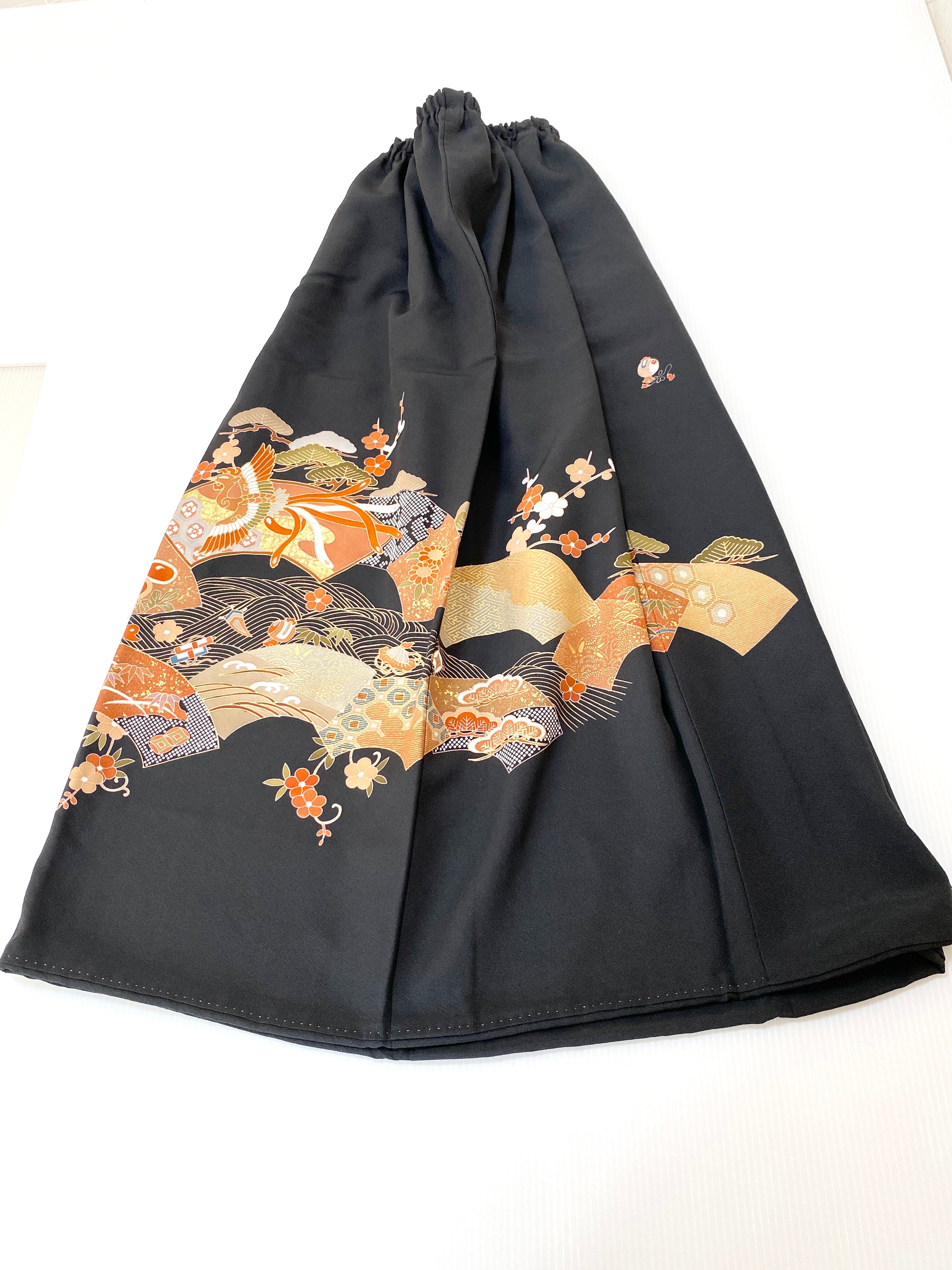 大人可愛いセレブ着物スカートフリーサイズ黒留袖着物リメイクウエストゴムロングスカート
