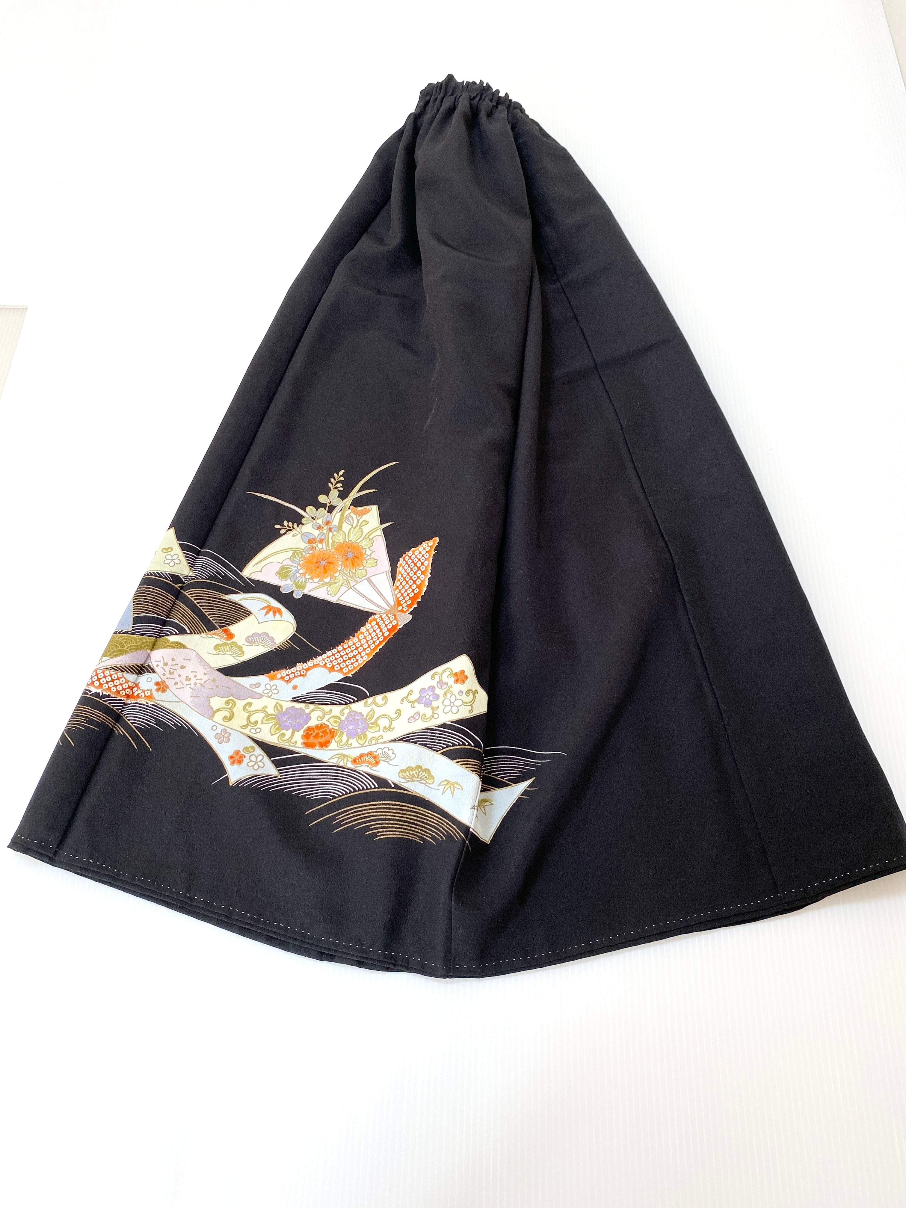 大人可愛いセレブ着物スカートフリーサイズ黒留袖着物リメイクウエストゴムロングスカート送料込みハンドメイドNO.2881