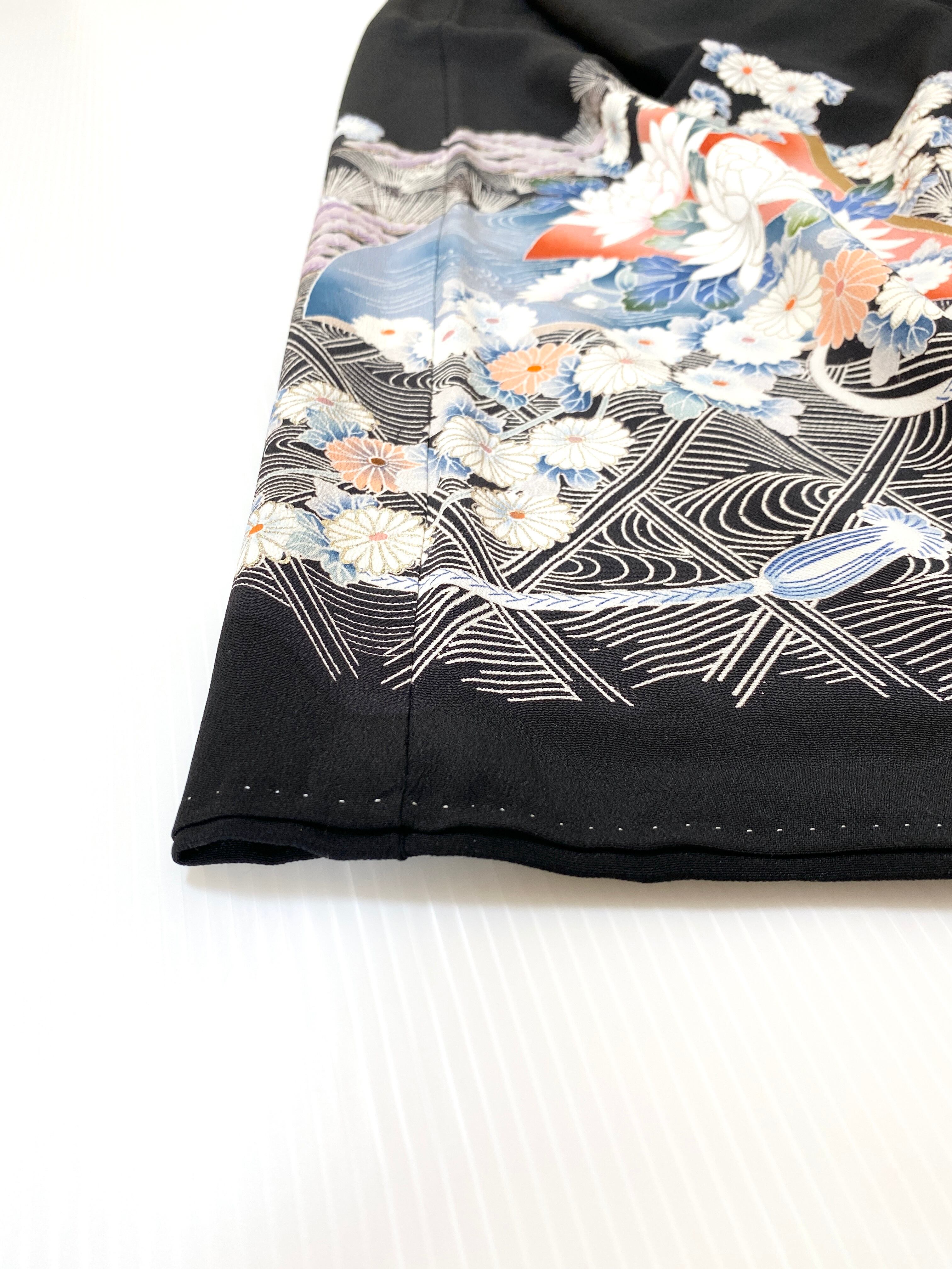 大人可愛いセレブ着物スカートフリーサイズ黒留袖着物リメイクウエストゴムロングスカート