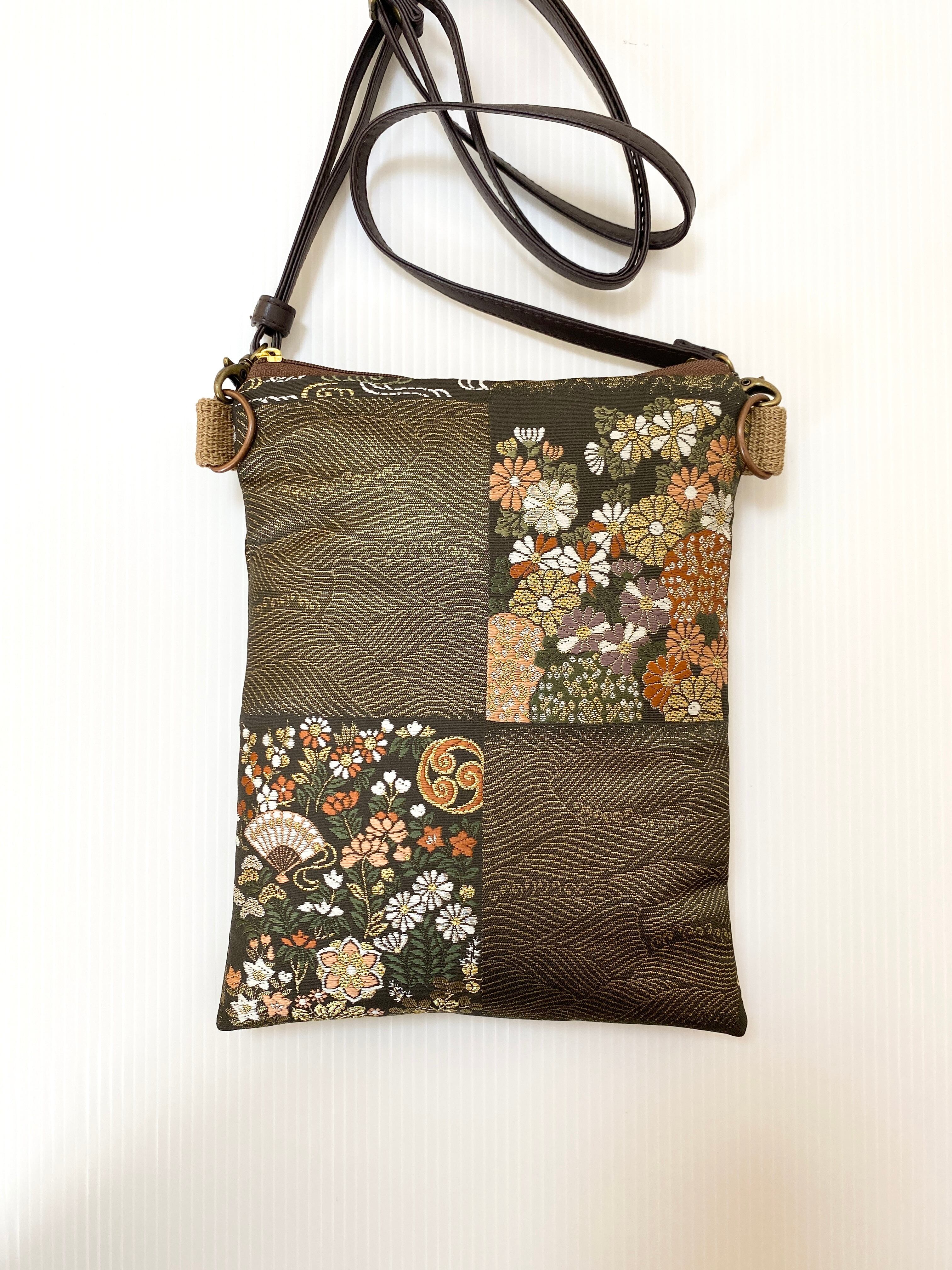 大人可愛いサコッシュバッグ帯リメイクサコッシュバッグ スマホショルダー スマホバッグ 帯リメイクバッグ ハンドメイド送料込みNO.3005