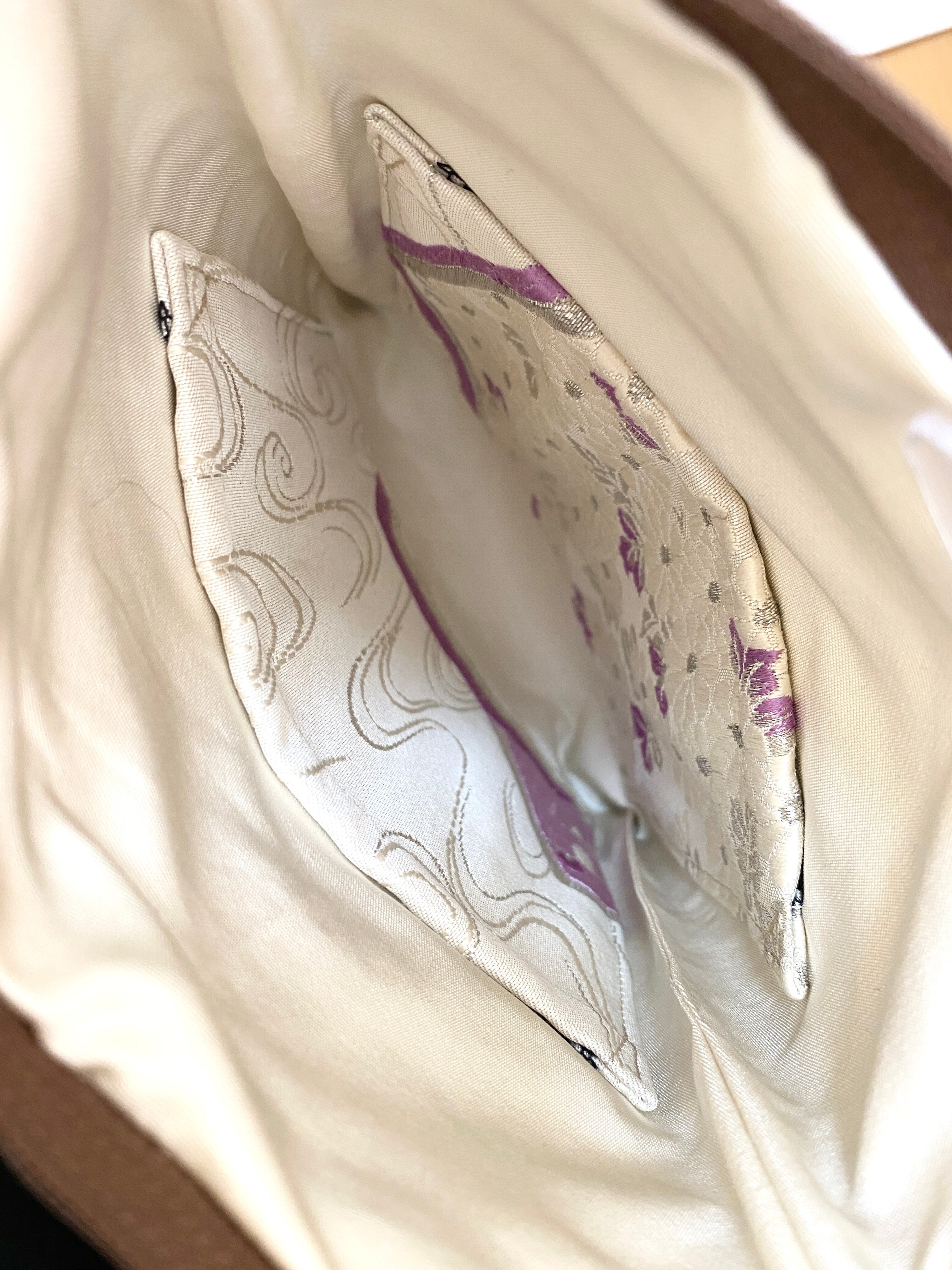 裏地にも帯生地を使用しております。しっかりとした帯生地で製作したサコッシュバッグ、スマホショルダーですので強度もあり安心。