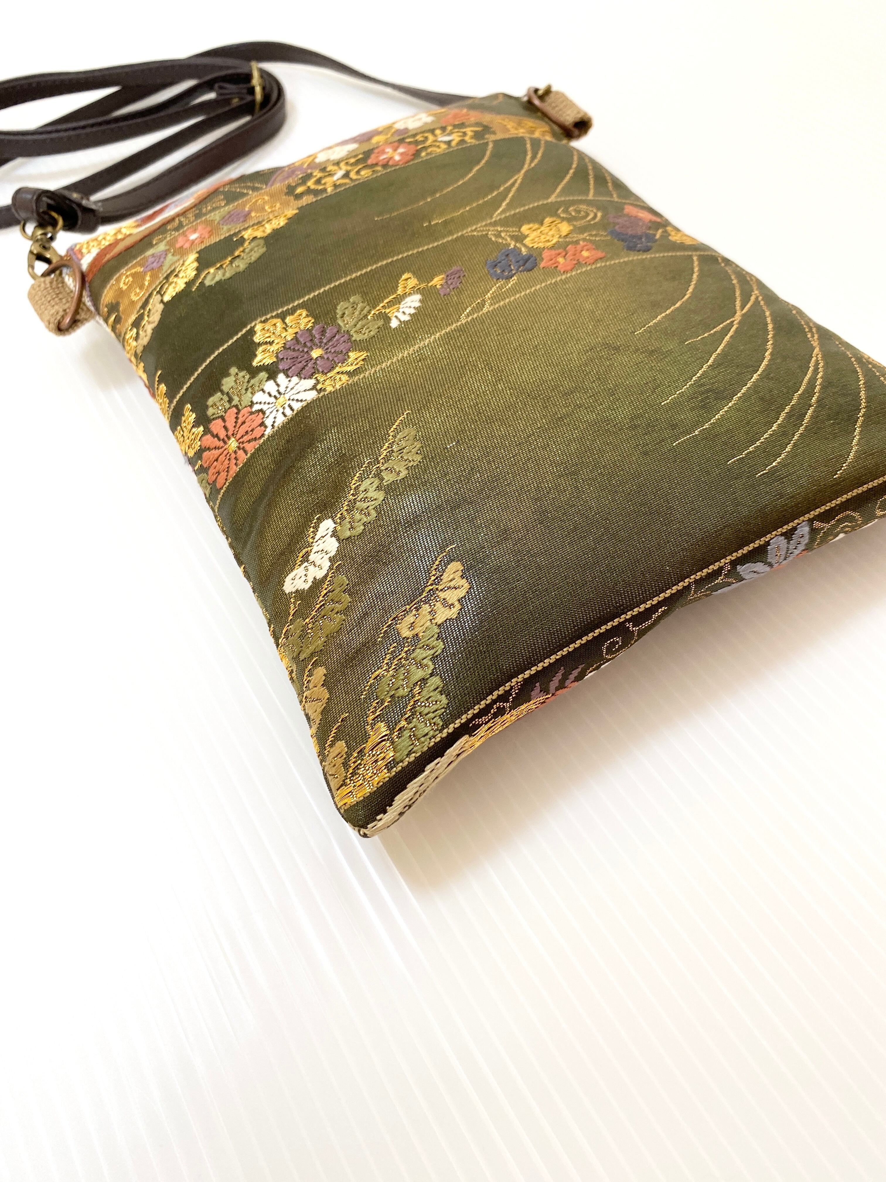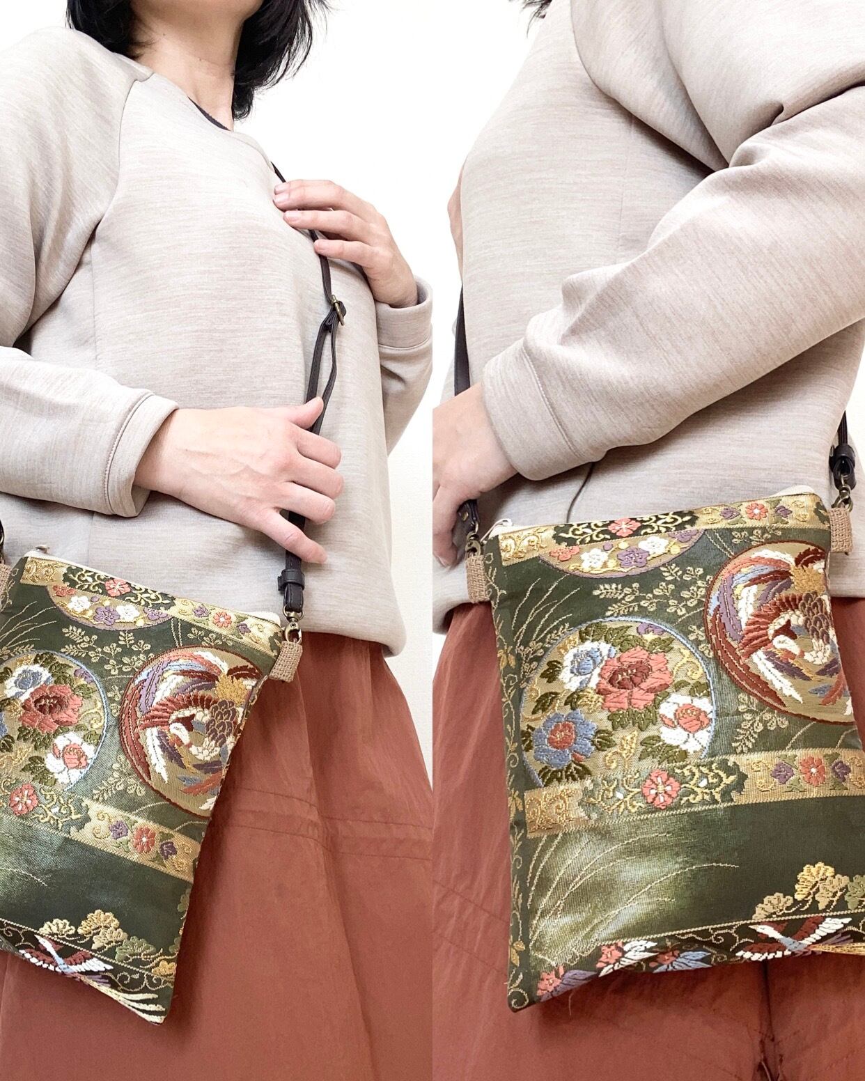 大人可愛いサコッシュバッグ帯リメイクサコッシュバッグ スマホショルダー スマホバッグ 帯リメイクバッグ ハンドメイド送料込みNO.3013