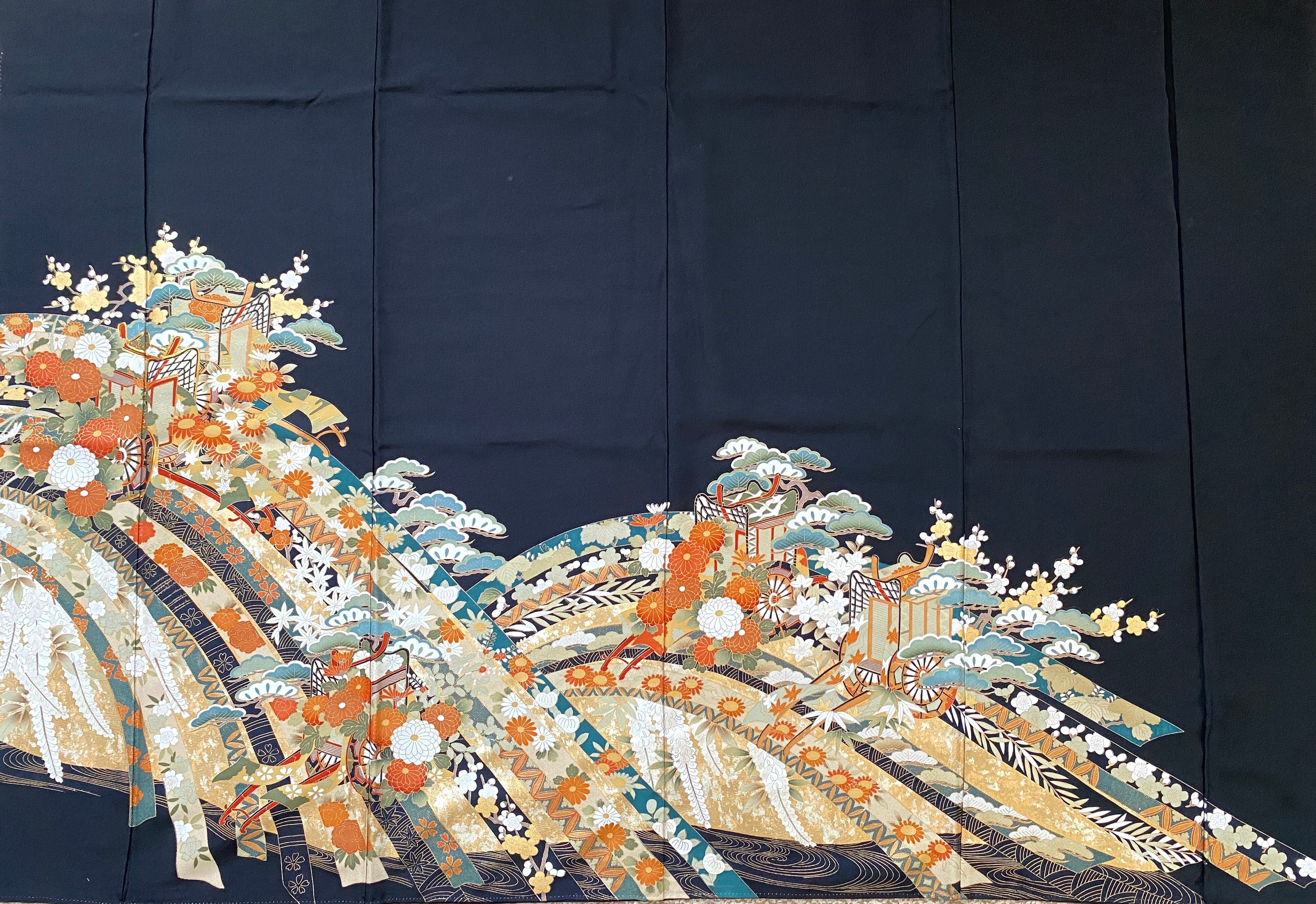 大人可愛いセレブ着物スカートフリーサイズ黒留袖着物リメイクウエストゴムロングスカート