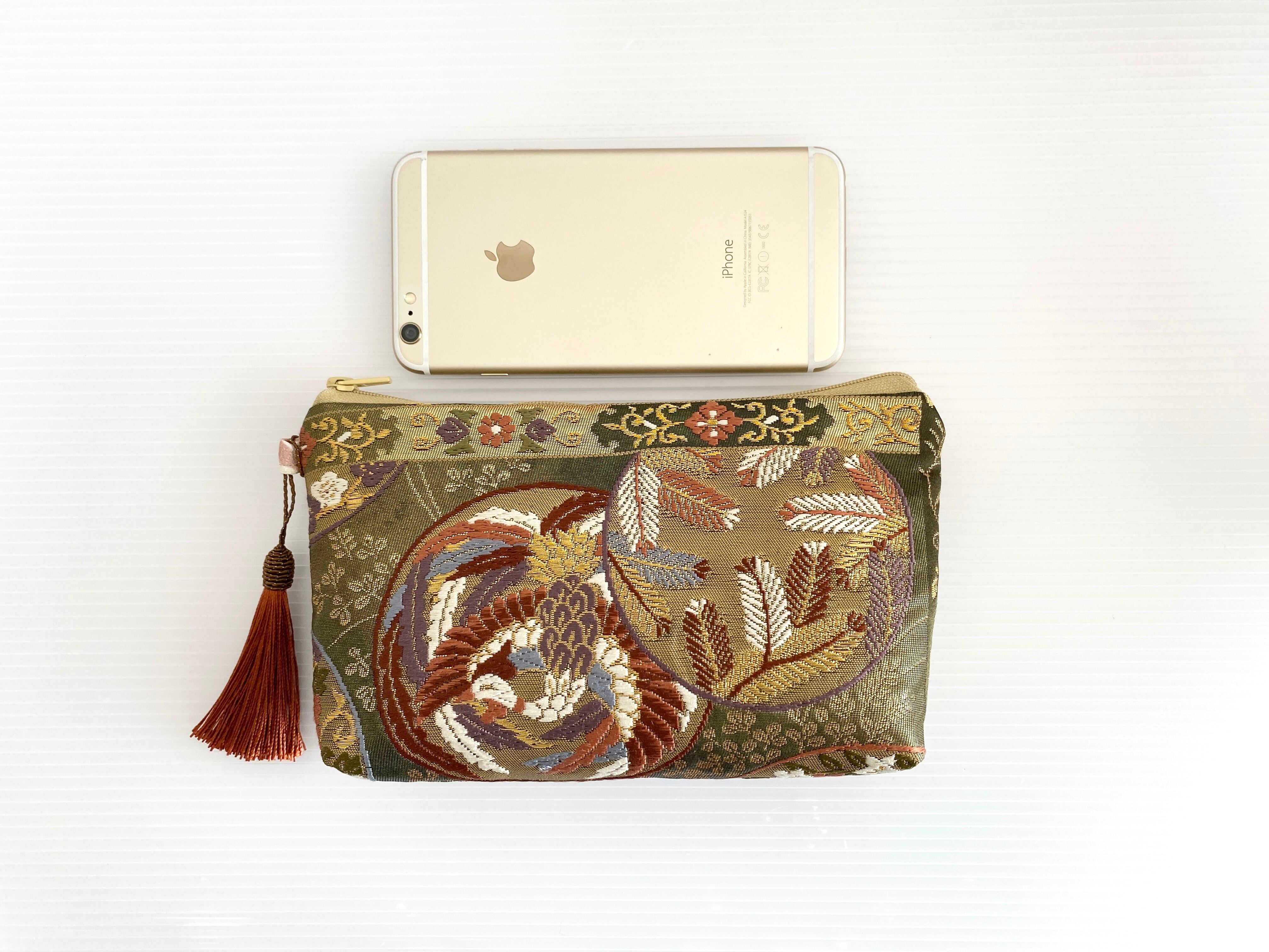 日本の古帯をリメイクして作製したポーチでハンドメイド品です。