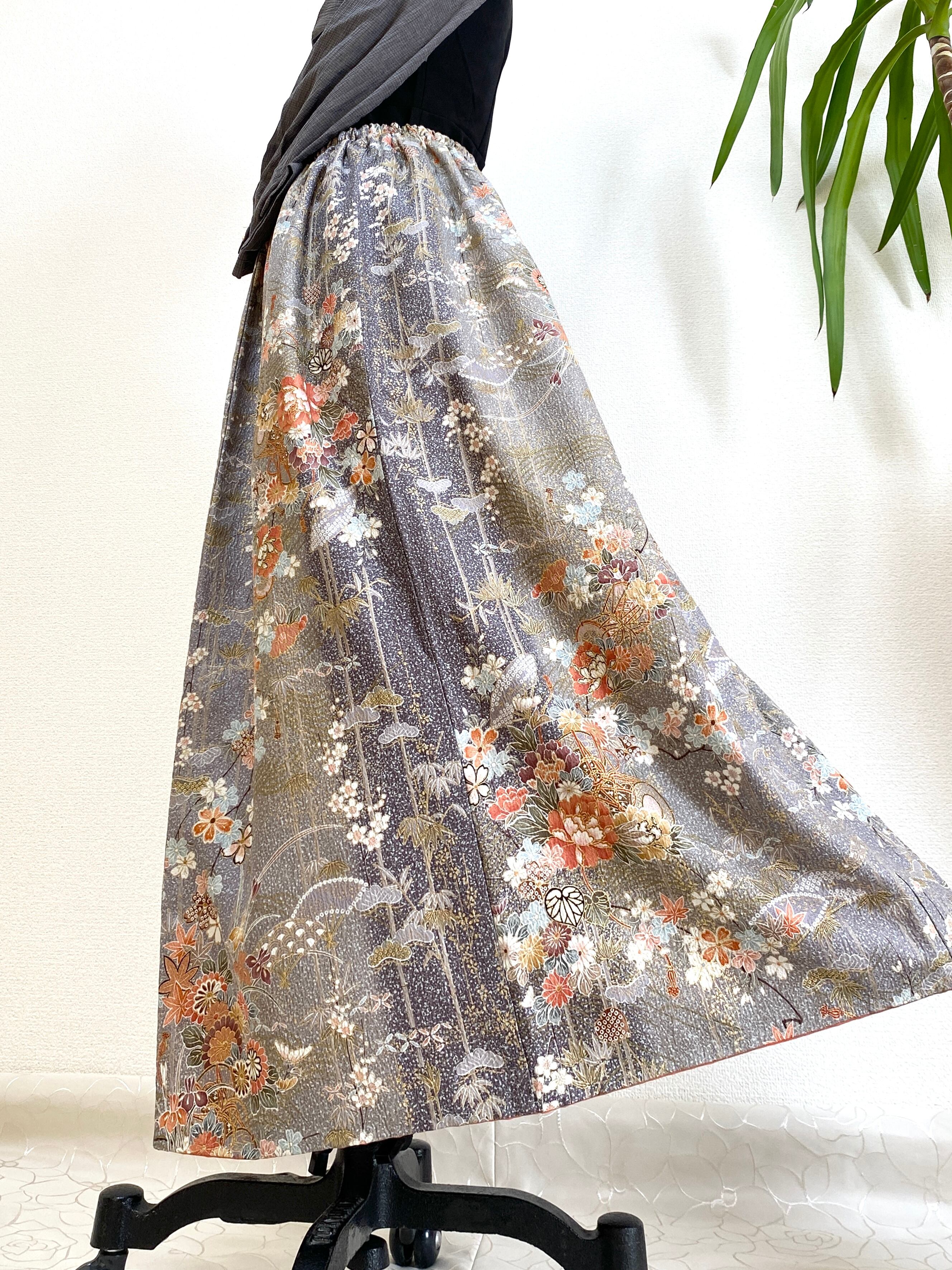 大人可愛い着物スカートフリーサイズ着物リメイクウエストゴムロングスカートフリーサイズ送料込みハンドメイド大人可愛いスカートNO.3086