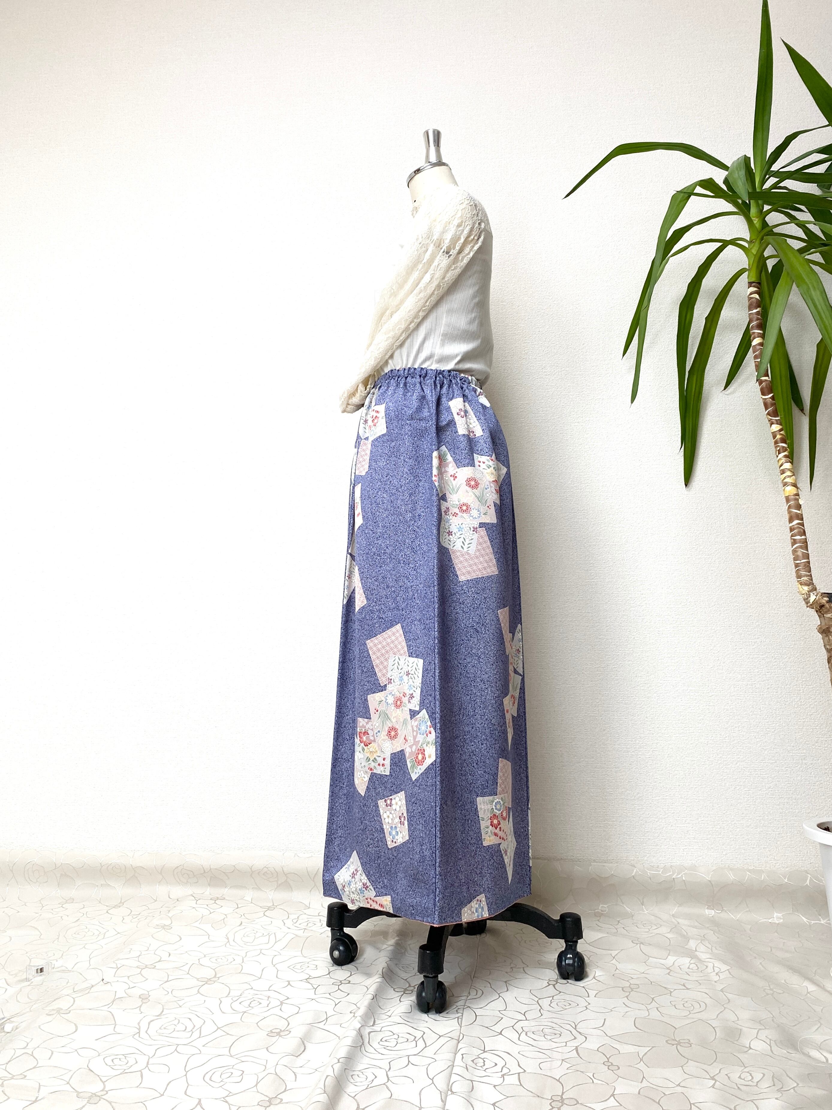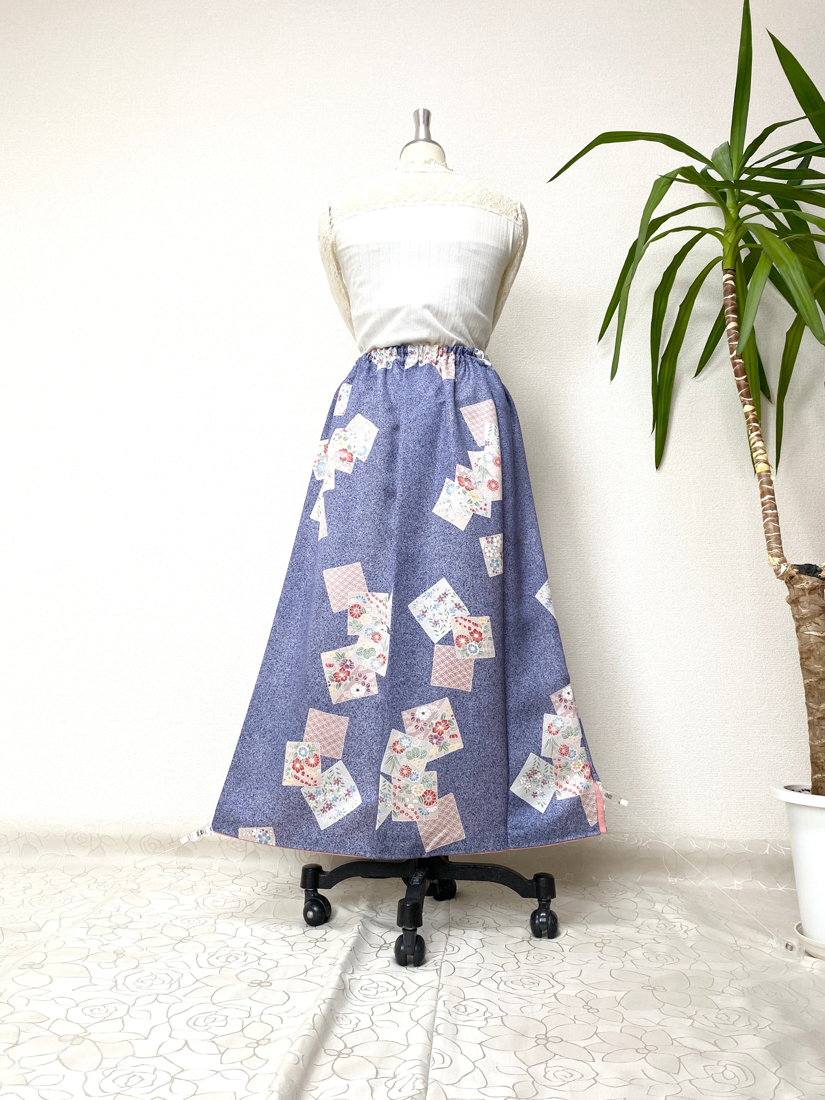 大人可愛い着物スカートフリーサイズ着物リメイクウエストゴムロングスカートフリーサイズ送料込みハンドメイド大人可愛いスカートNO.5003