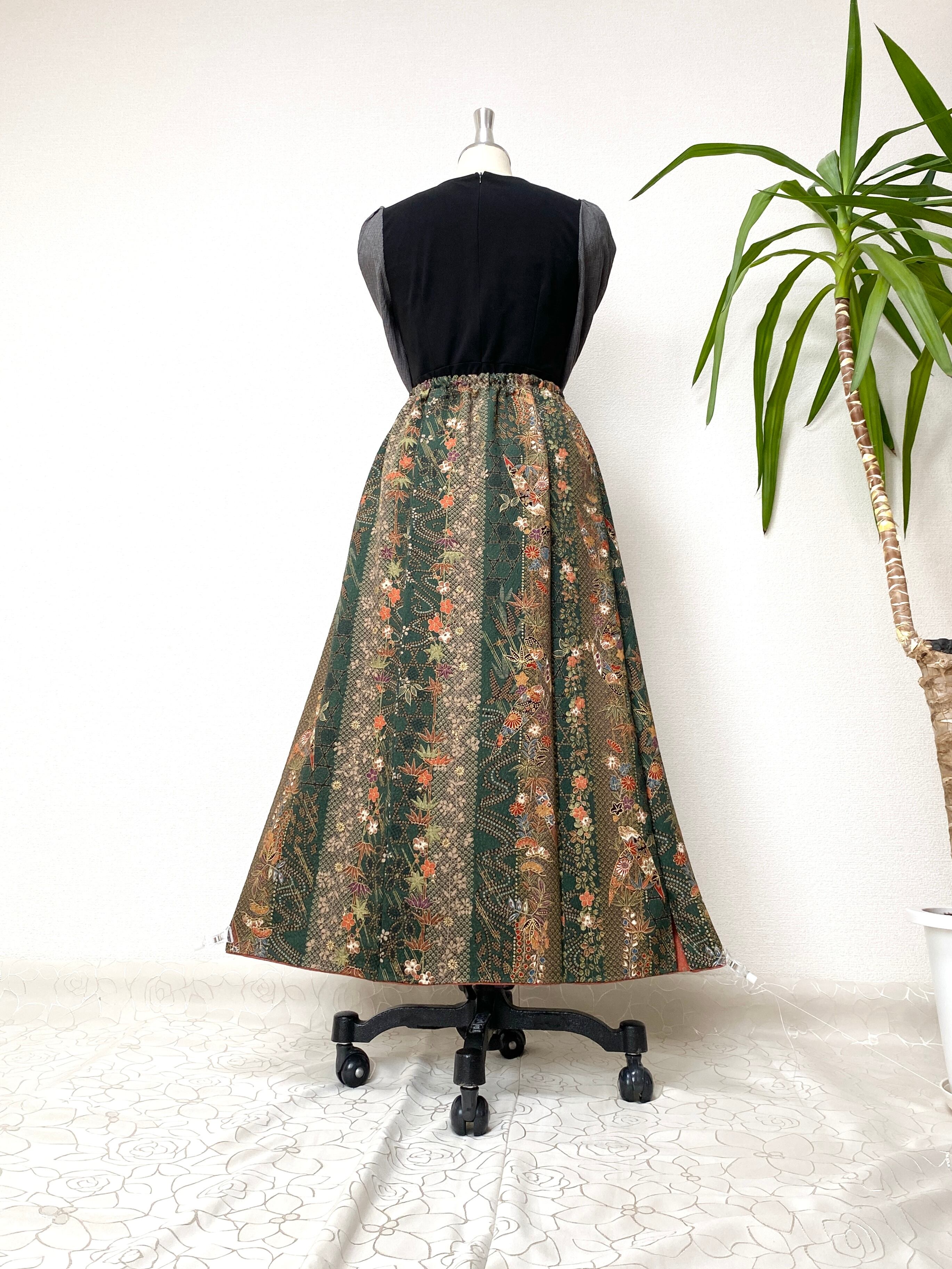 着物をリメイクして作製したウエストゴムロングドレススカートフリーサイズです。