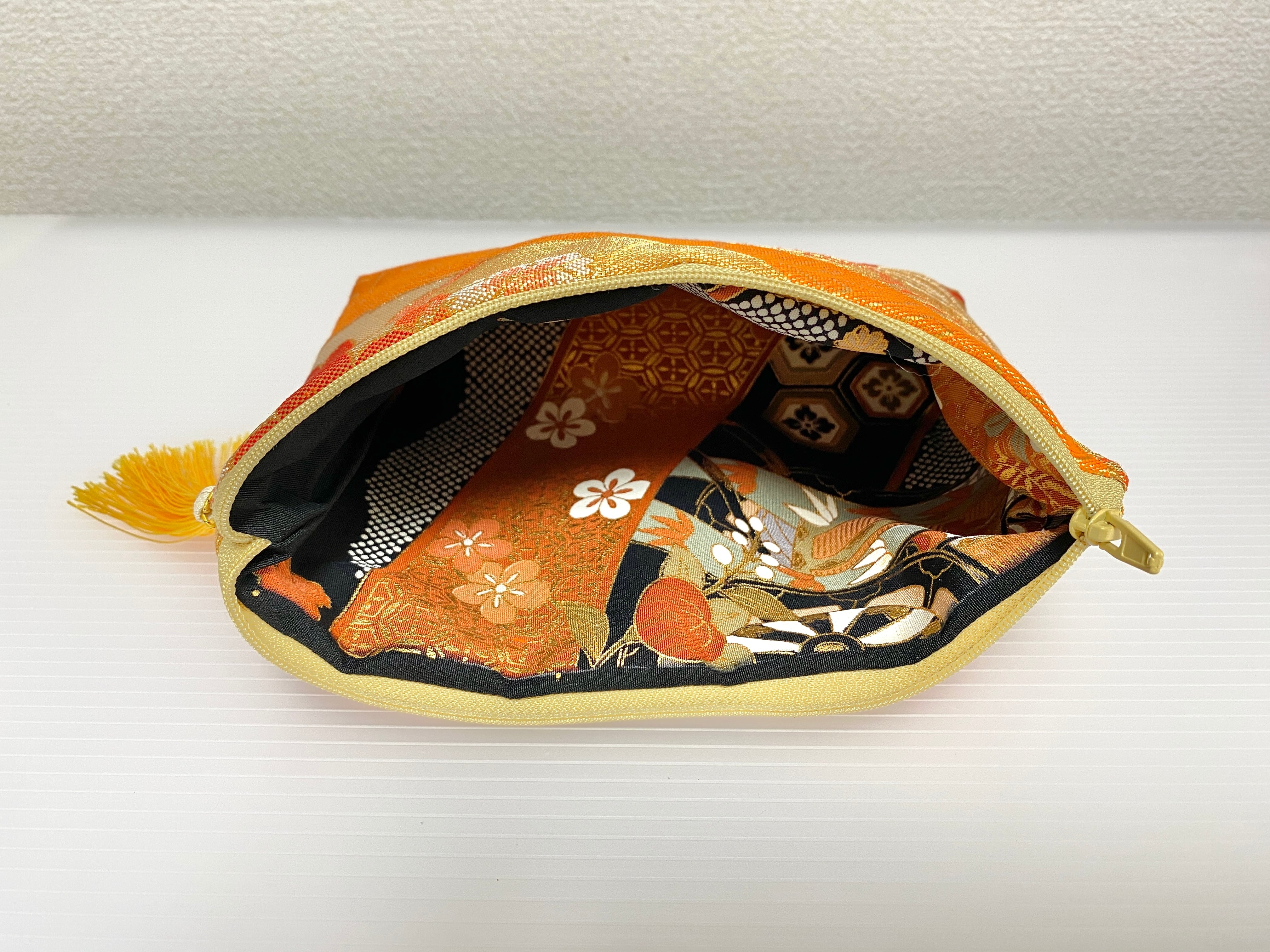 日本の古帯をリメイクして作製したポーチでハンドメイド品です。