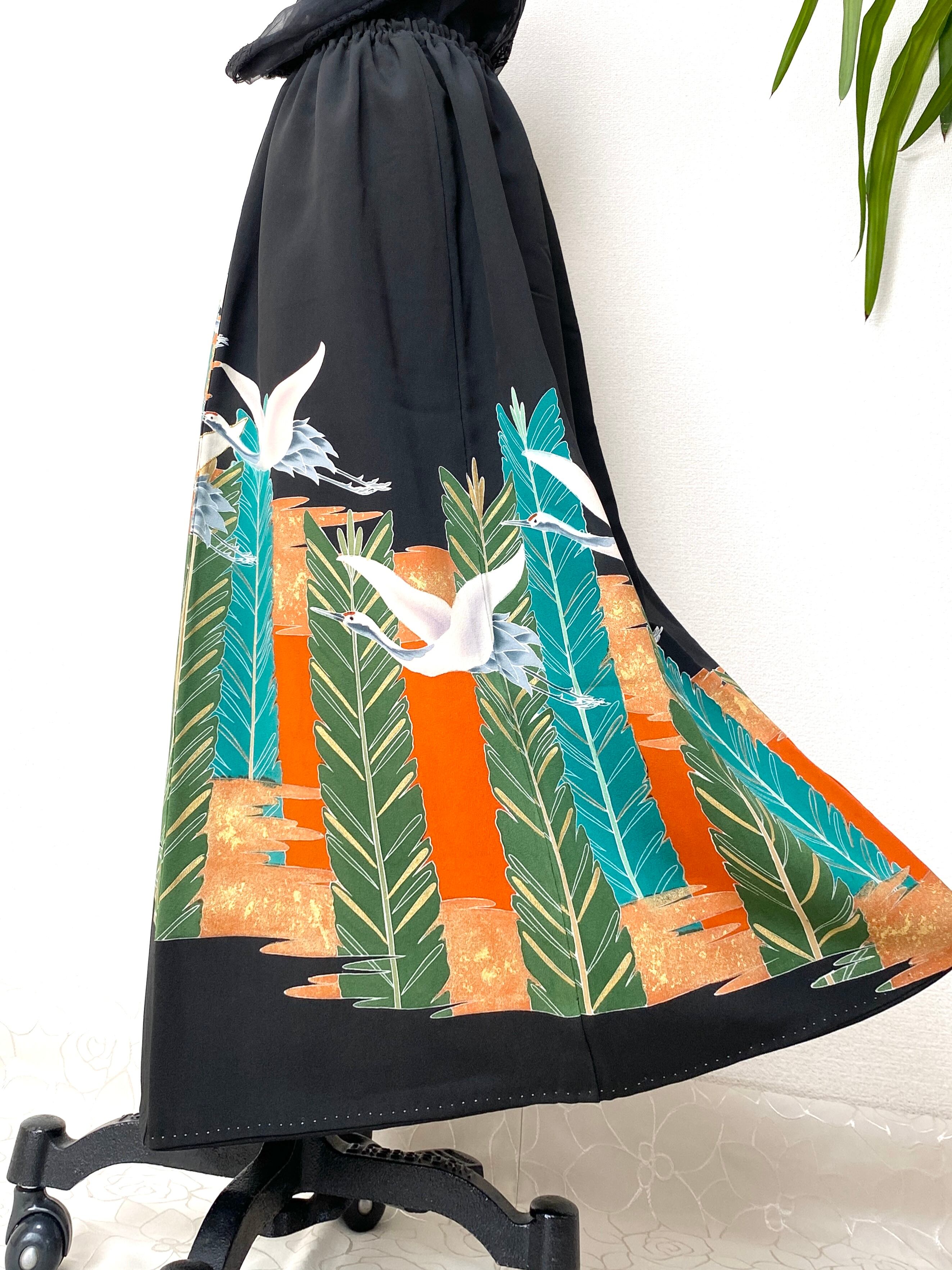大人可愛いセレブ着物スカートフリーサイズ黒留袖着物リメイクウエストゴムロングスカート