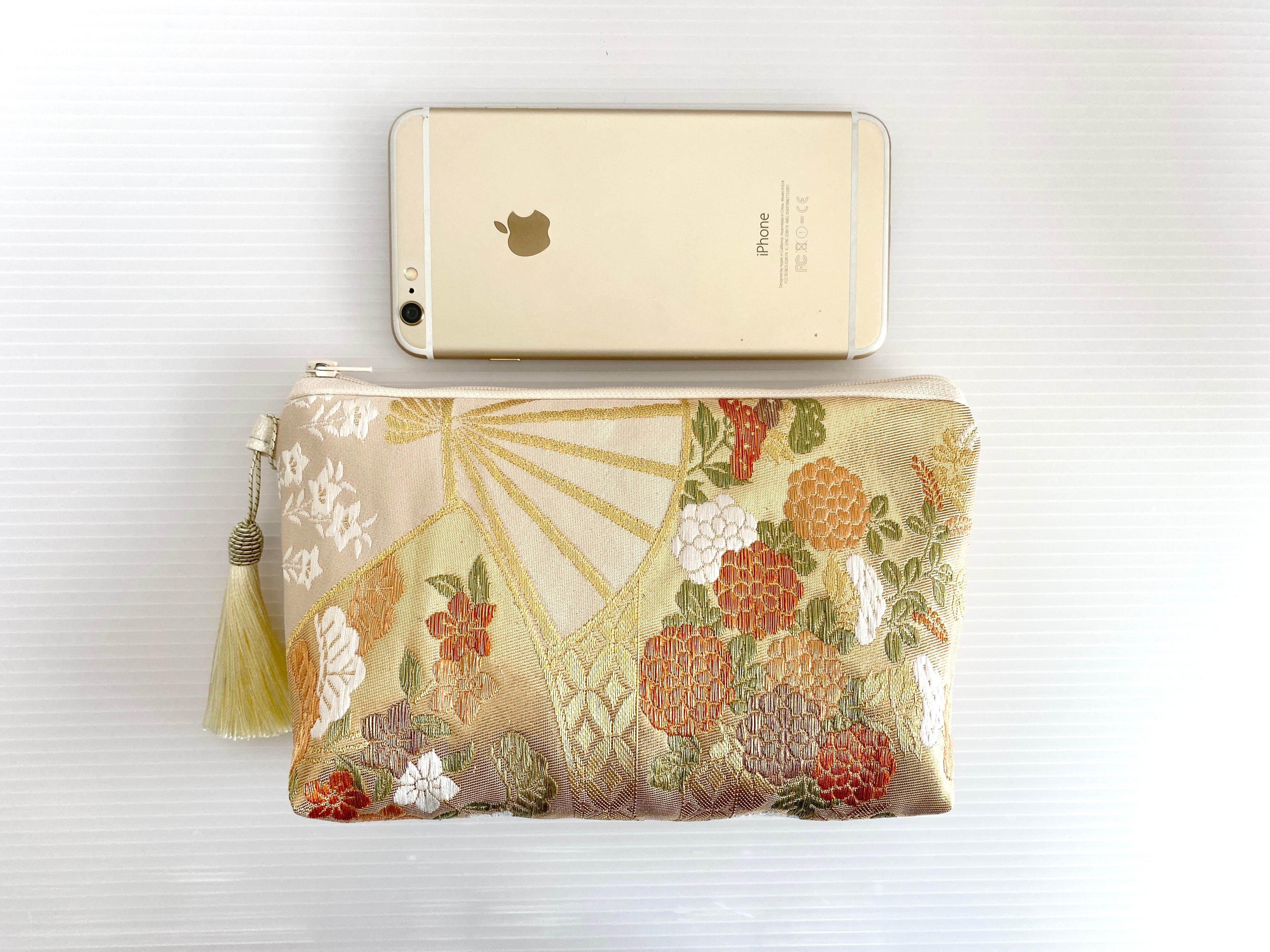 大人可愛いセレブポーチ帯リメイクポーチ化粧ポーチマルチポーチマルチケース着物リメイクポーチハンドメイド送料込みNO.5086