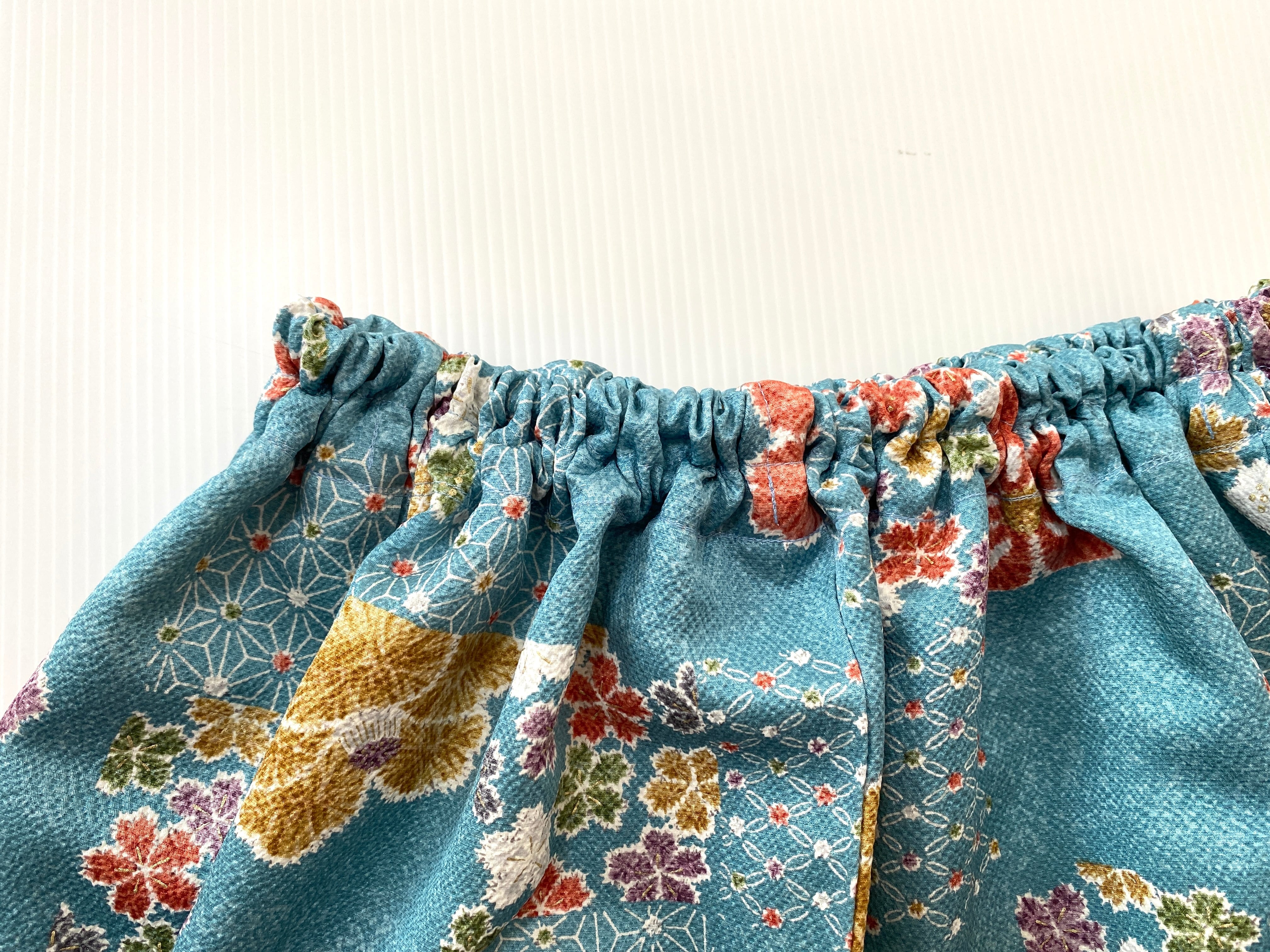 和装だけどスカート、ウエストゴムなので着るのがとてもラクチン体もとても楽な着物リメイクスカートです