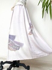 着物をリメイクして作製したウエストゴムロングドレススカートフリーサイズです