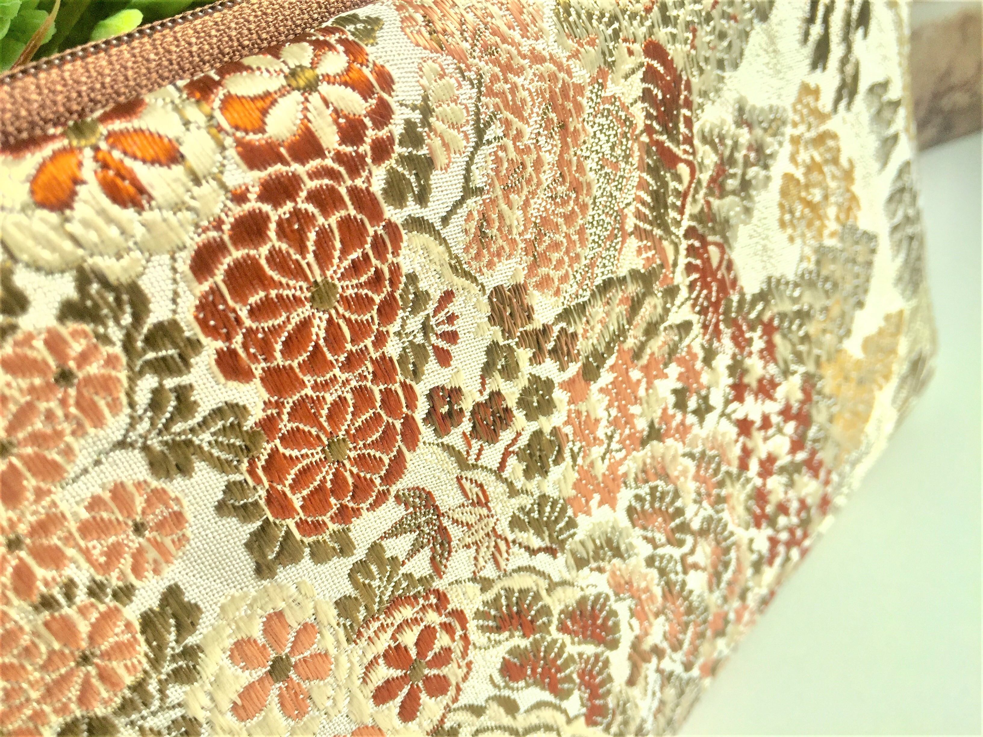 日本の帯をリメイクして作製したポーチです。完全防水ではありませんが、強度や撥水性に優れた良質の日本の帯生地を使用しております。