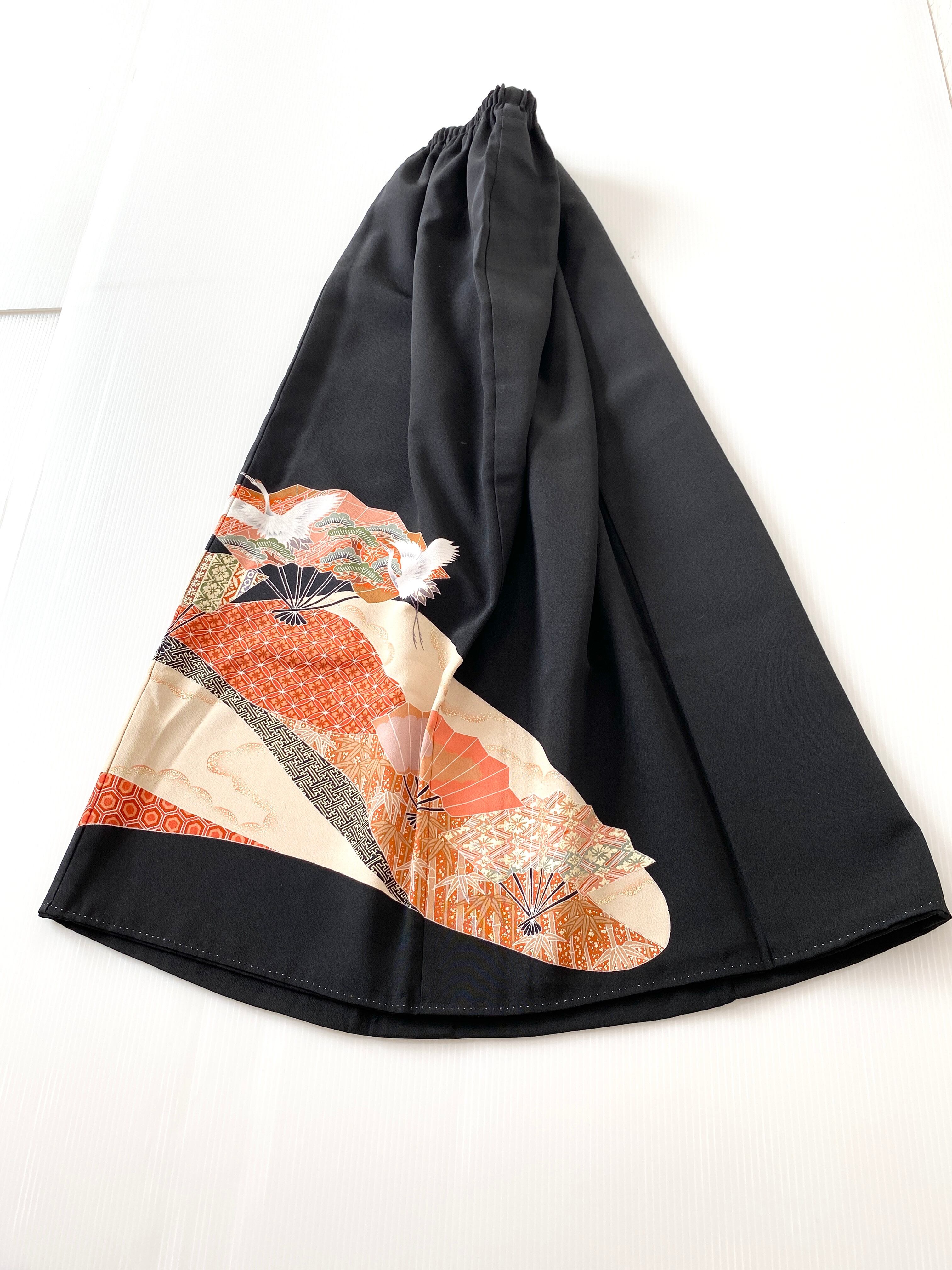 大人可愛いセレブ着物スカートフリーサイズ黒留袖着物リメイクウエストゴムロングスカート