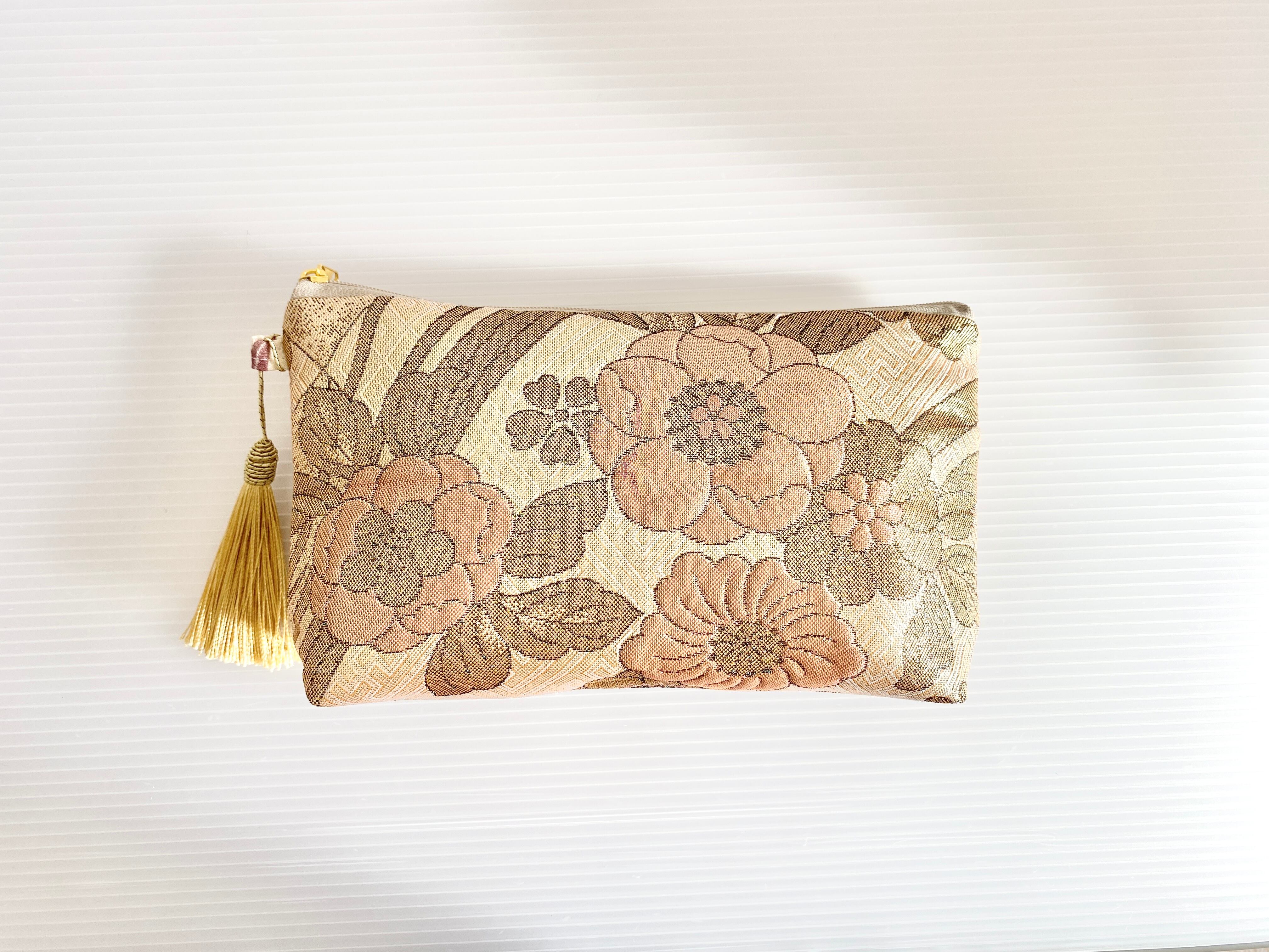 日本の古着物帯をリメイクして作製したポーチでハンドメイド品です