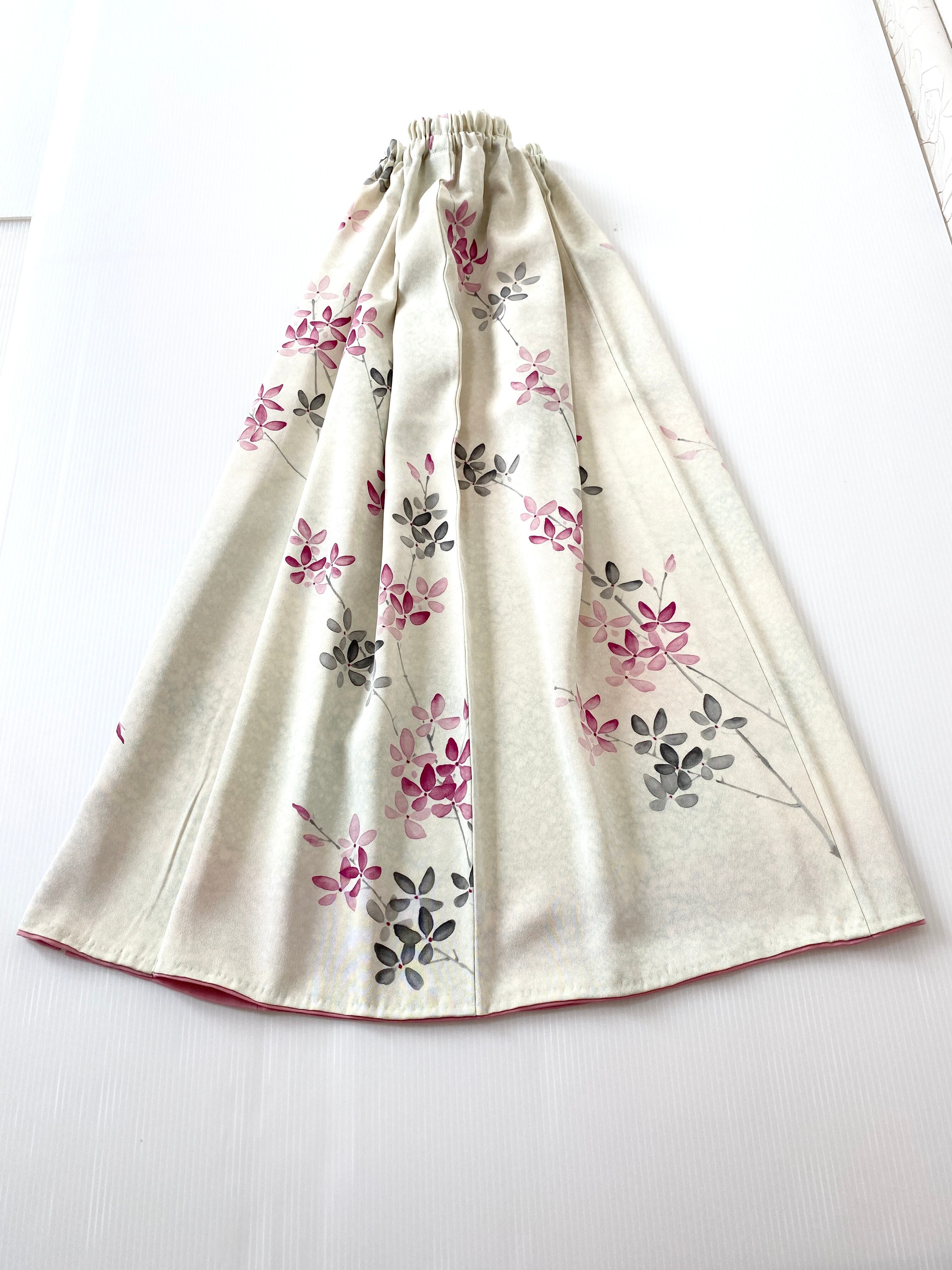 着物をリメイクして作製したウエストゴムロングドレススカートフリーサイズです
