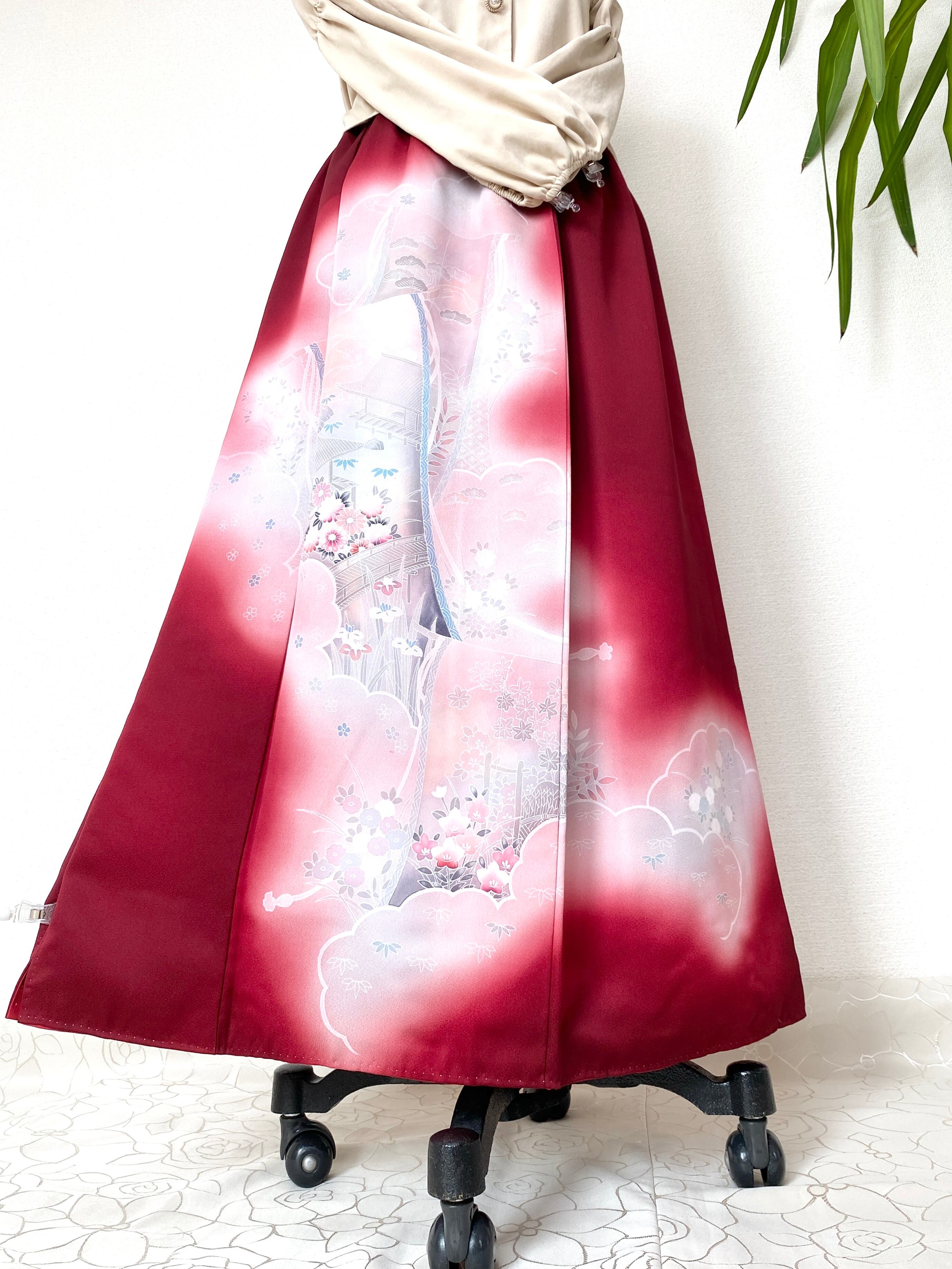 大人可愛いセレブ着物スカートフリーサイズ大人可愛い着物リメイクウエストゴムロングスカートフリーサイズ