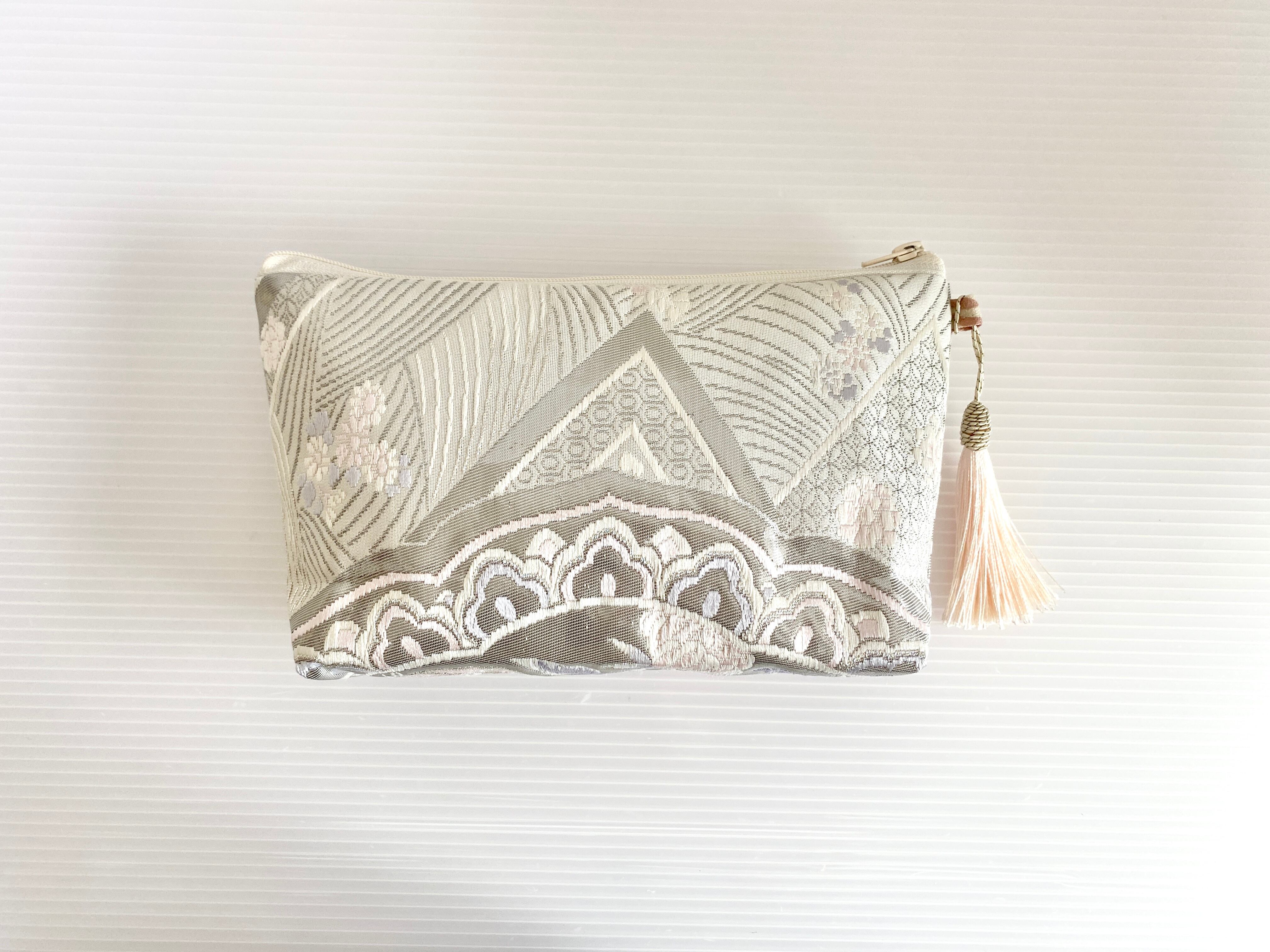 日本の古着物帯をリメイクして作製したポーチでハンドメイド品です