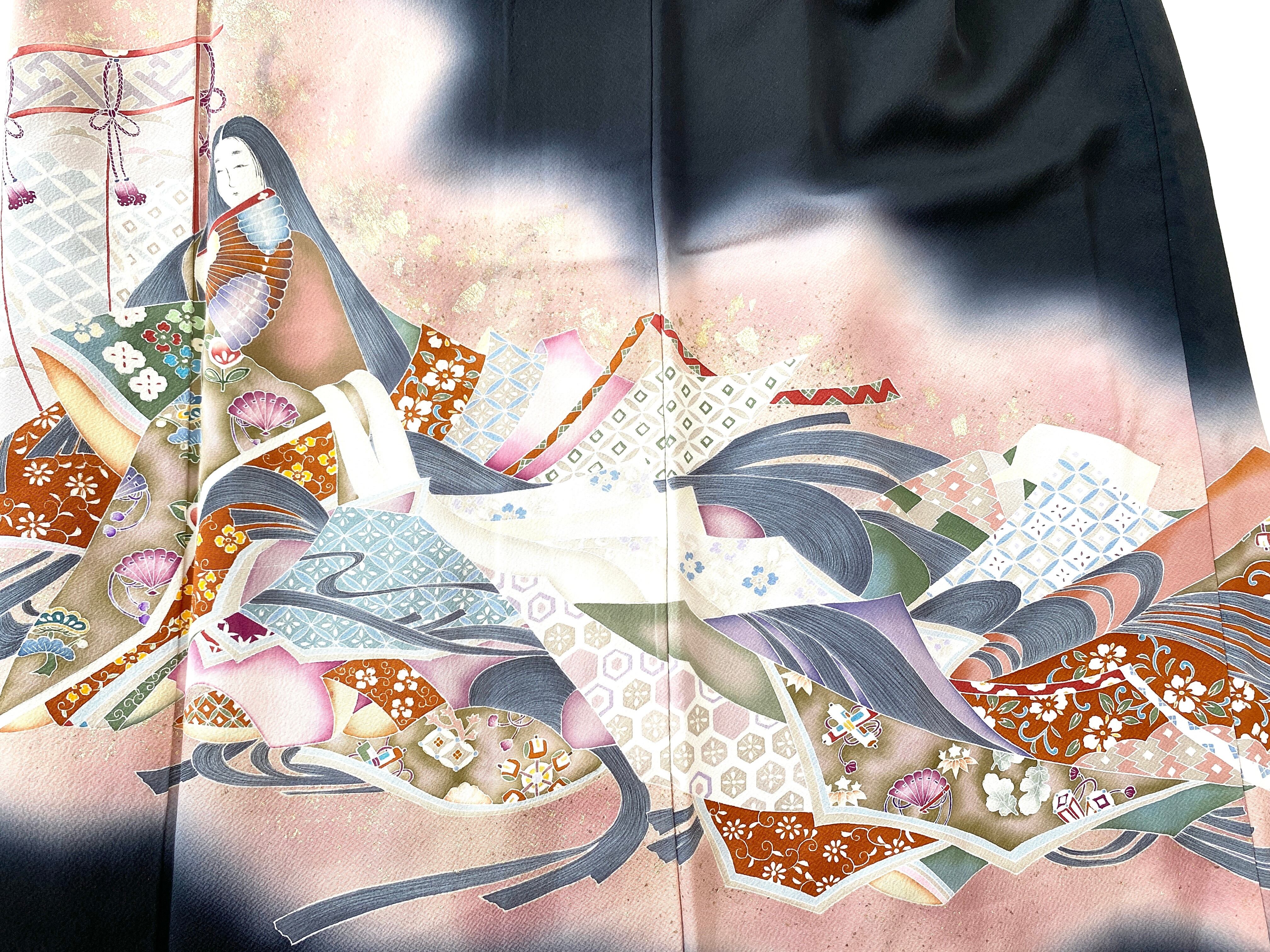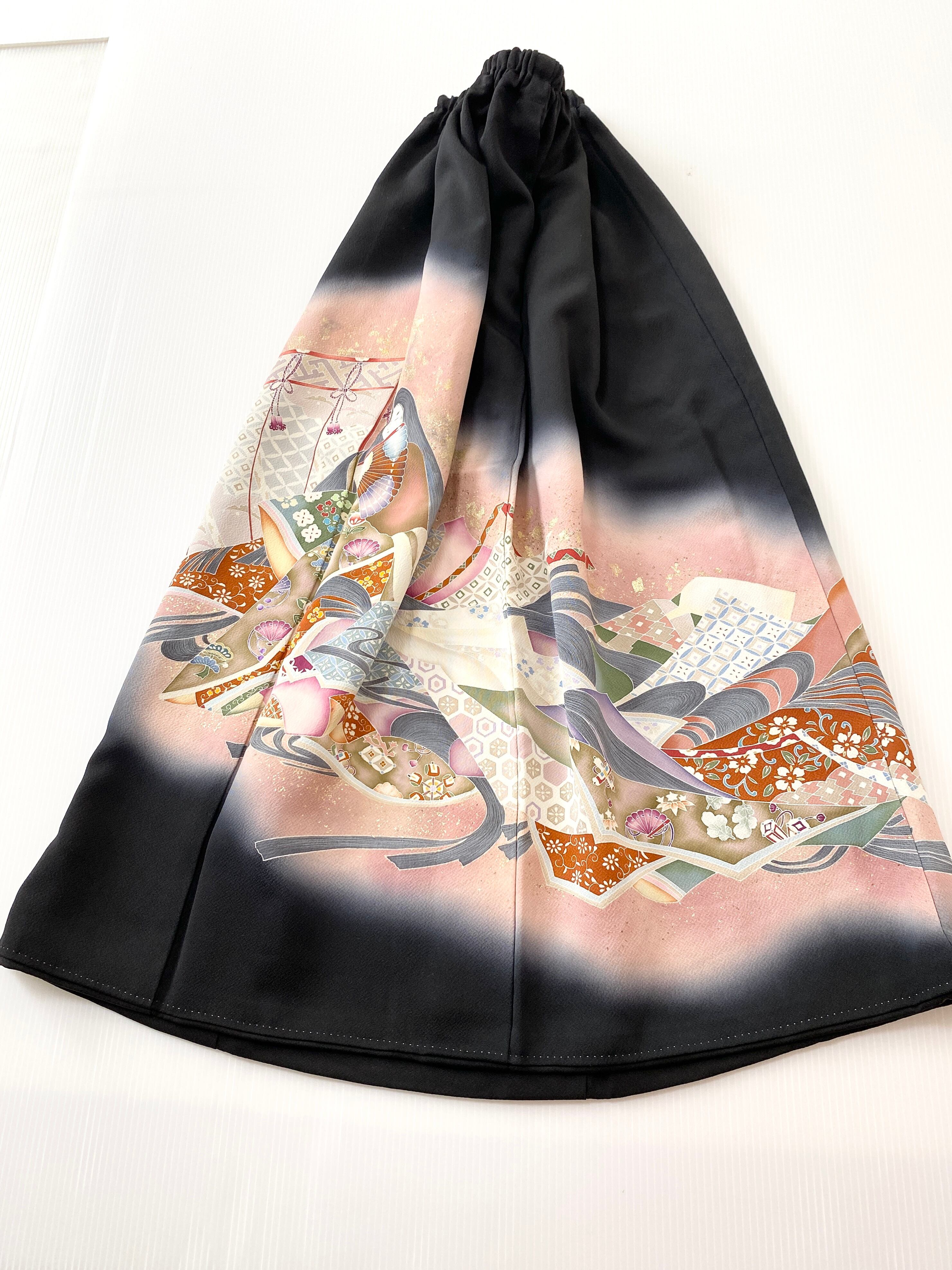 大人可愛いセレブ着物スカートフリーサイズ黒留袖着物リメイクウエストゴムロングスカート