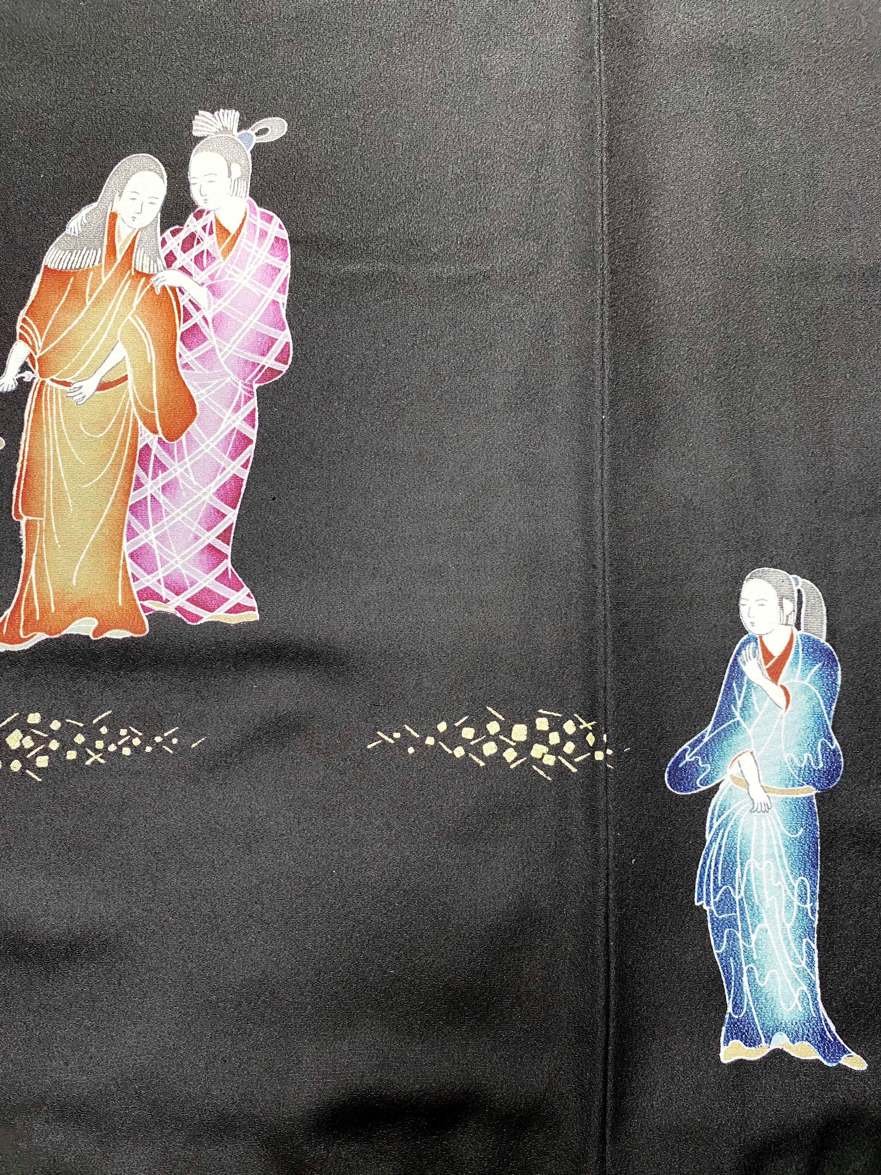 大人可愛いセレブ着物スカートフリーサイズ黒留袖着物リメイクウエストゴムロングスカート