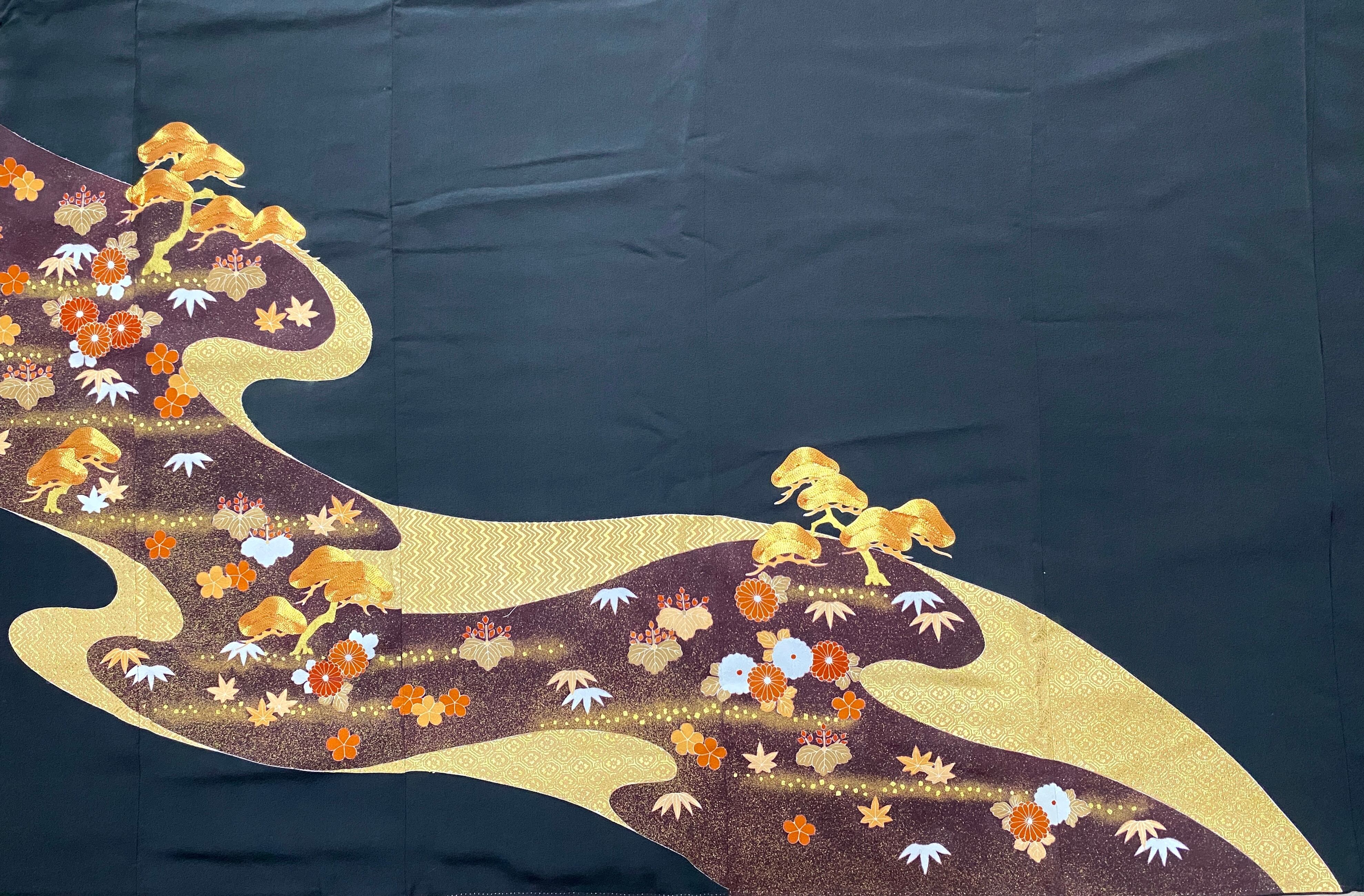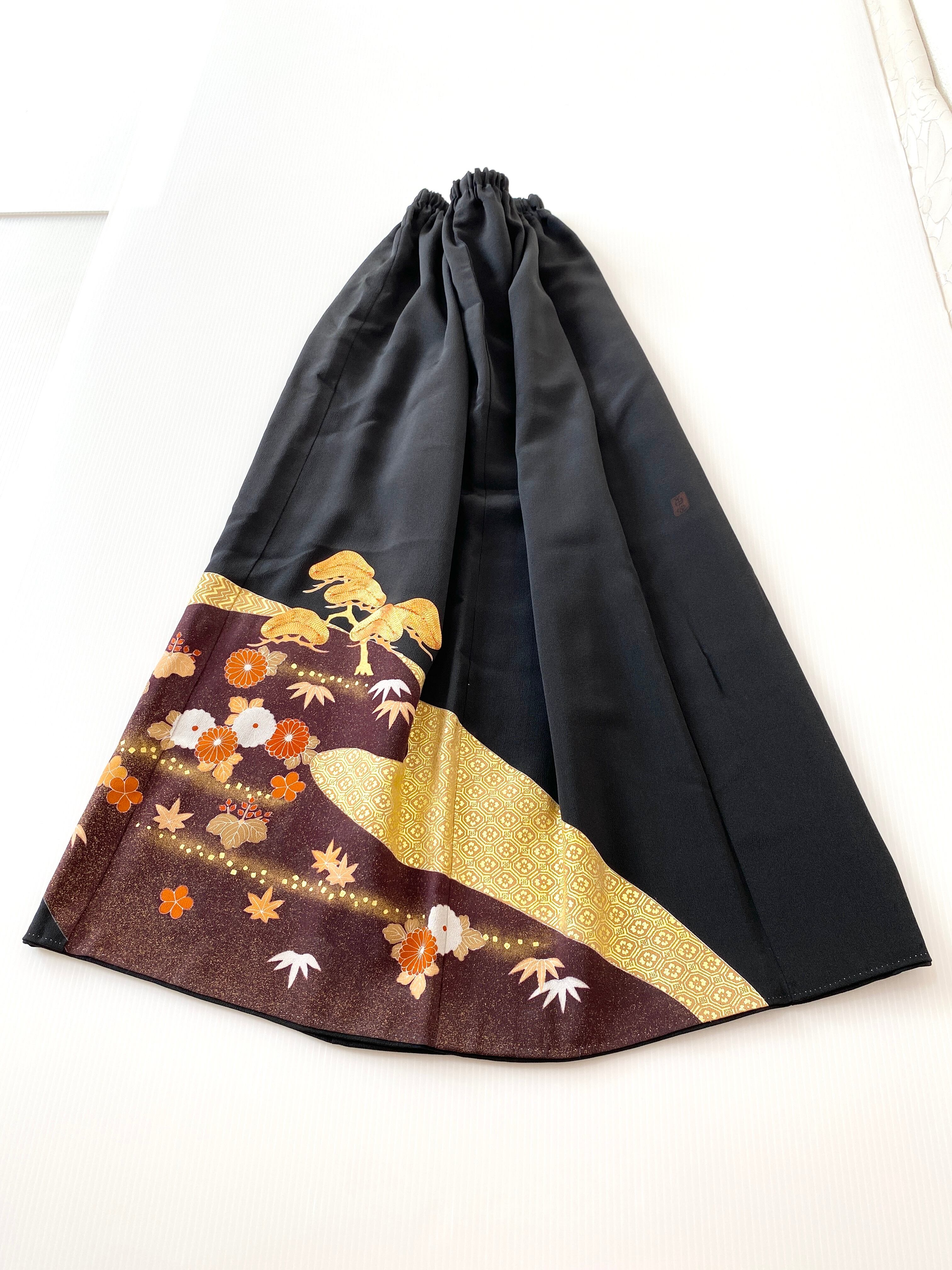 大人可愛いセレブ着物スカートフリーサイズ黒留袖着物リメイクウエストゴムロングスカート