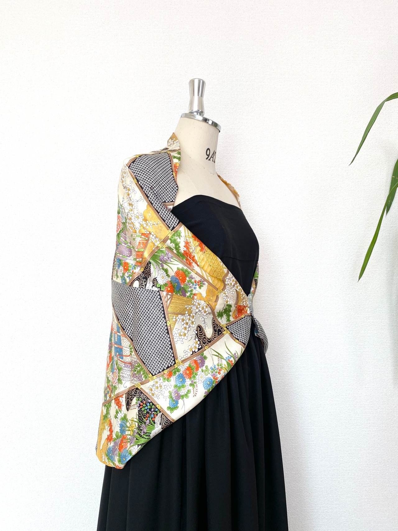 着物をリメイクし作製した羽織物ストールショールです