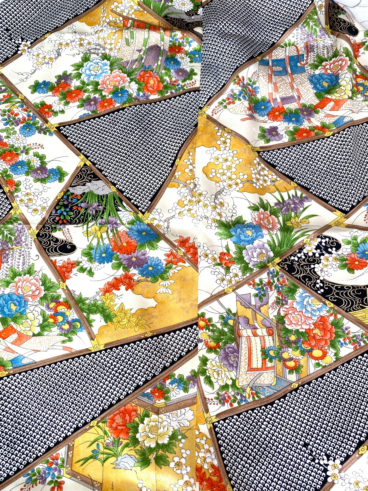 触り心地が滑らかで手にしっくりとくる安心感。絵柄の鮮やかさは日本の着物ならではの存在感で素晴らしく華やかな美しさです