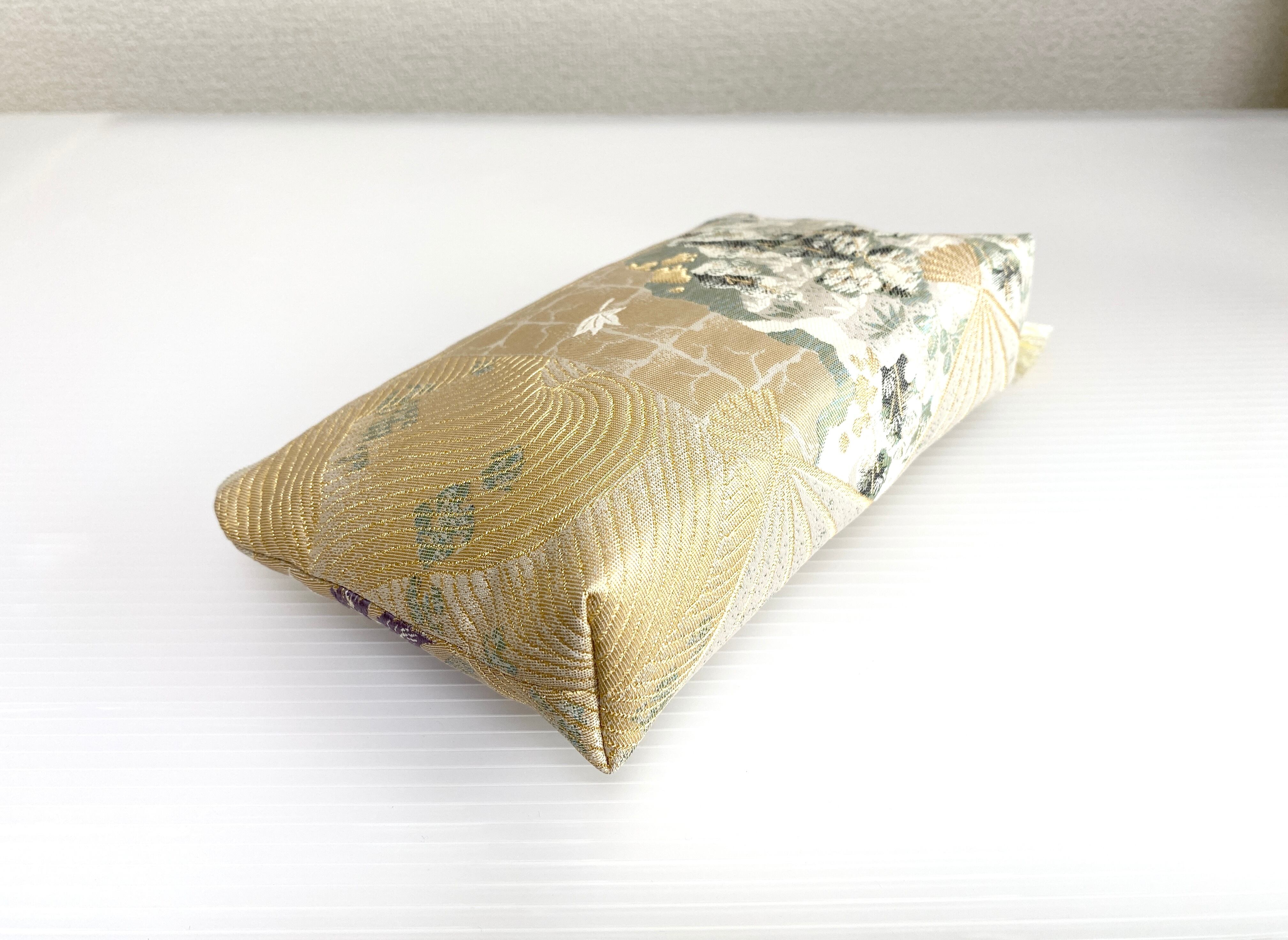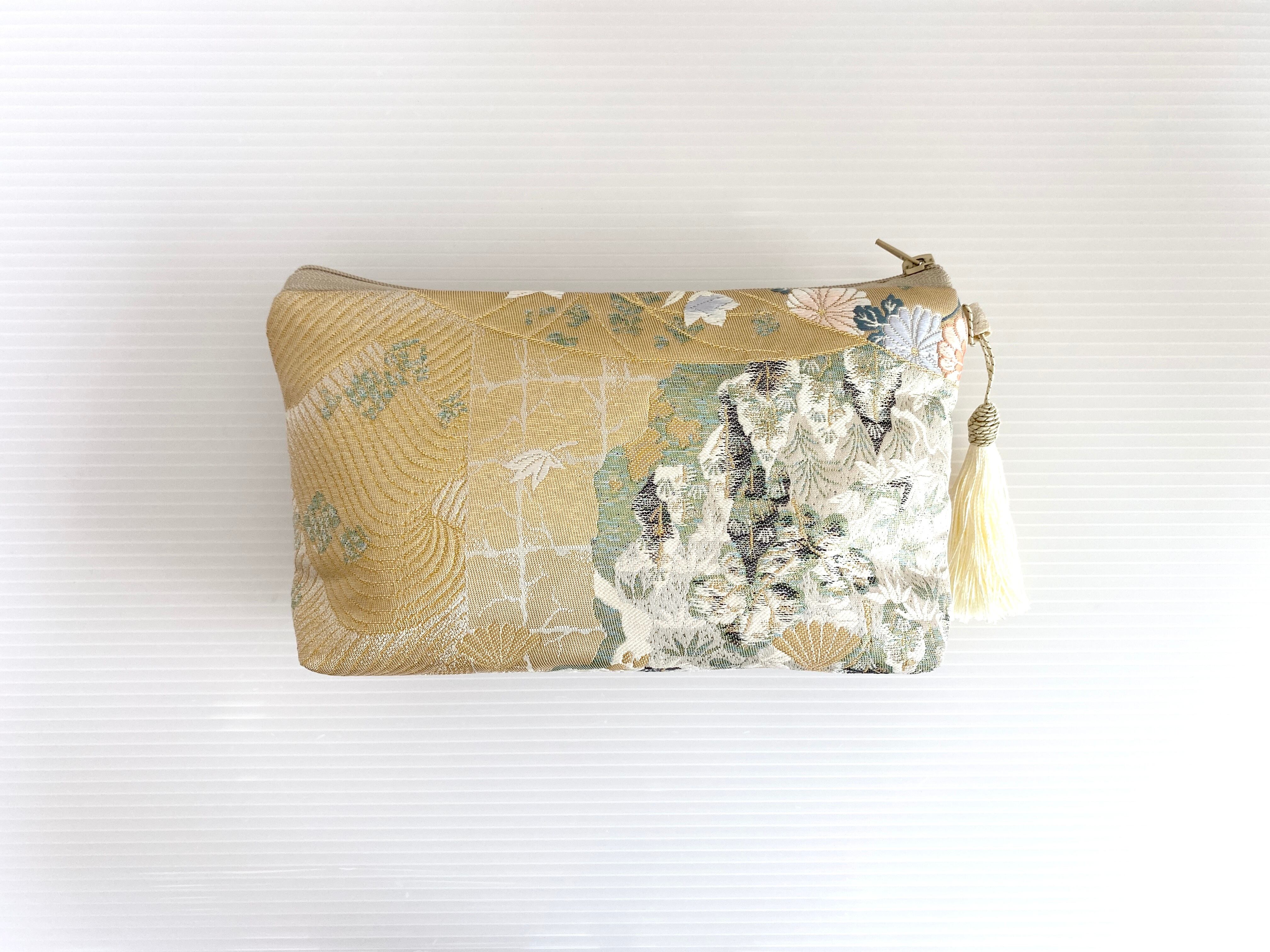 日本の古着物帯をリメイクして作製したポーチでハンドメイド品です