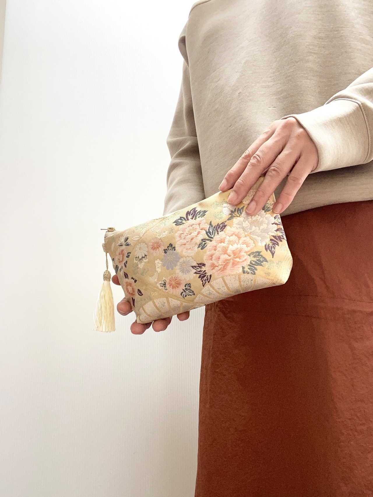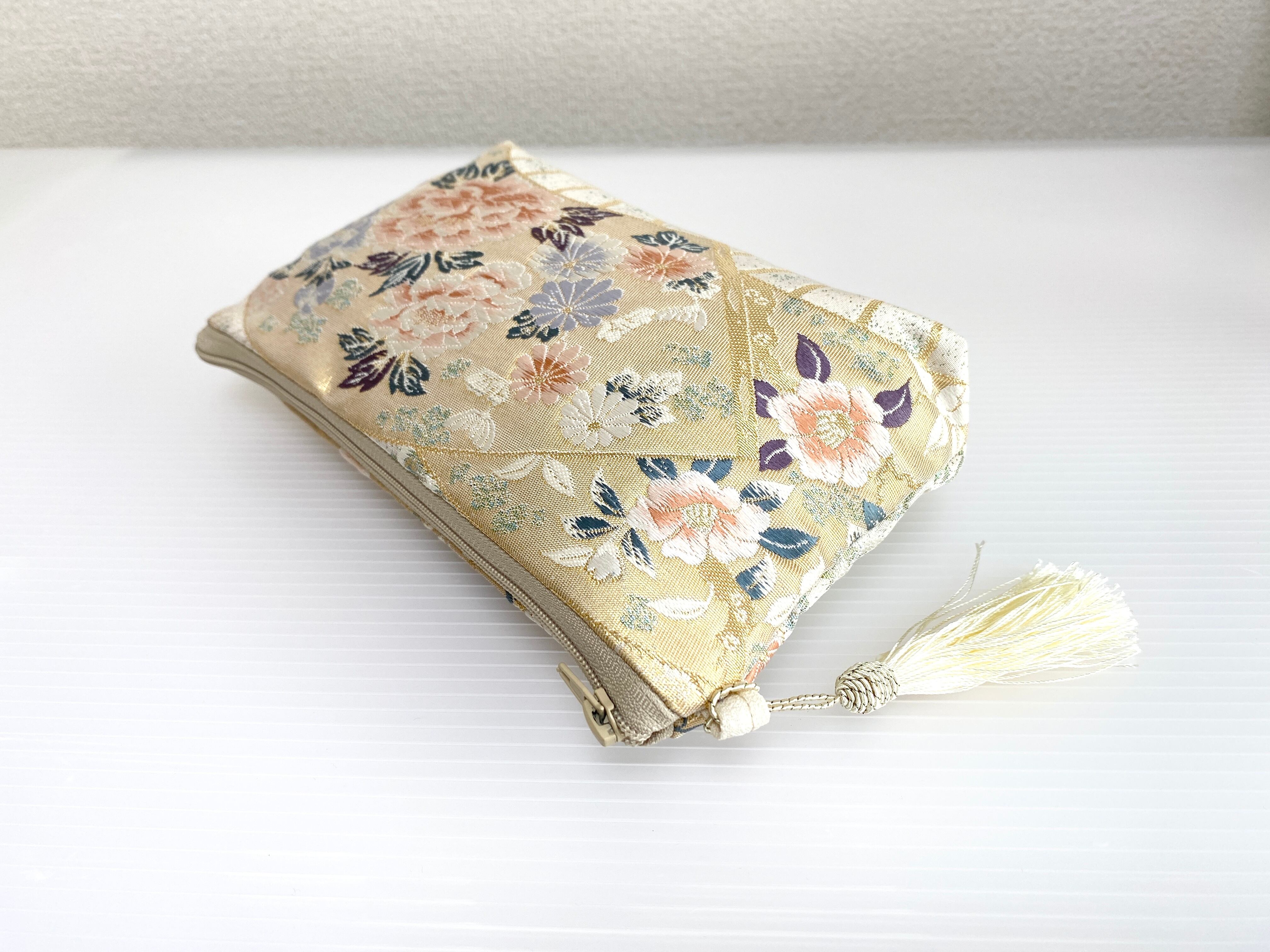 大人可愛いセレブポーチ帯リメイクポーチ化粧ポーチマルチポーチマルチケース着物リメイクポーチハンドメイド送料込みNO.5213