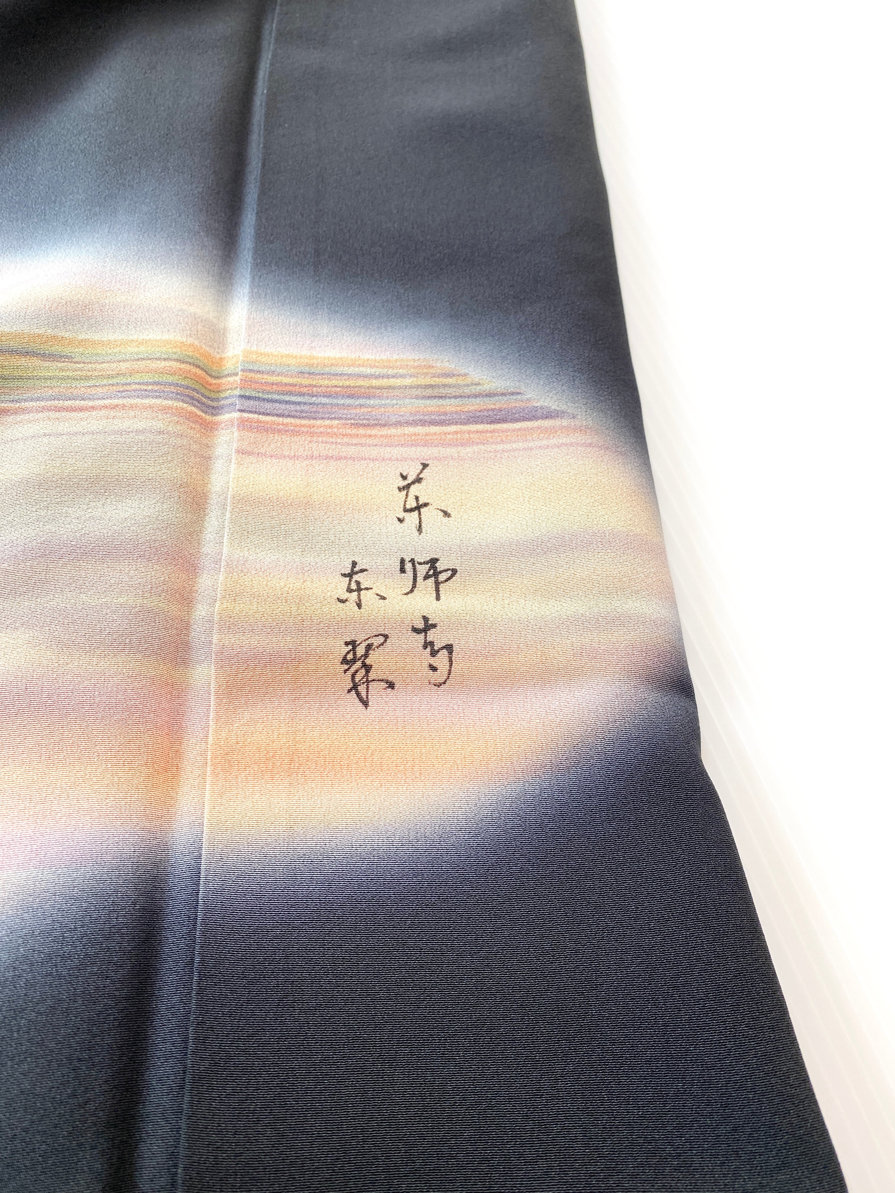 大人可愛いセレブ着物スカートフリーサイズ黒留袖着物リメイクウエストゴムロングスカート