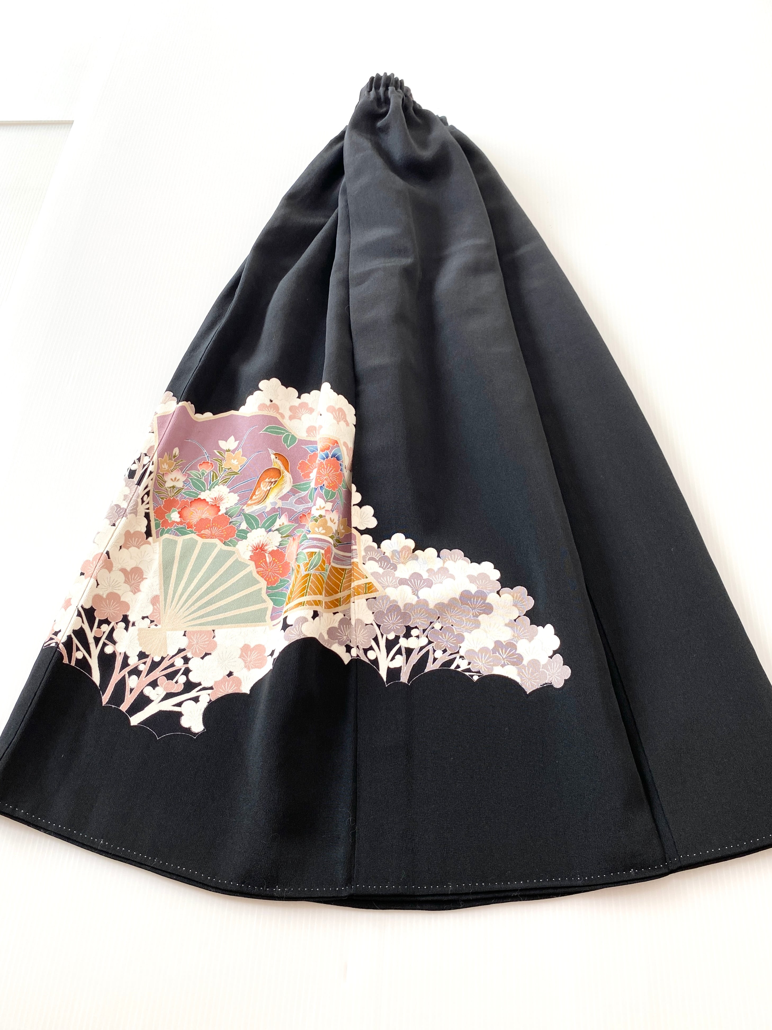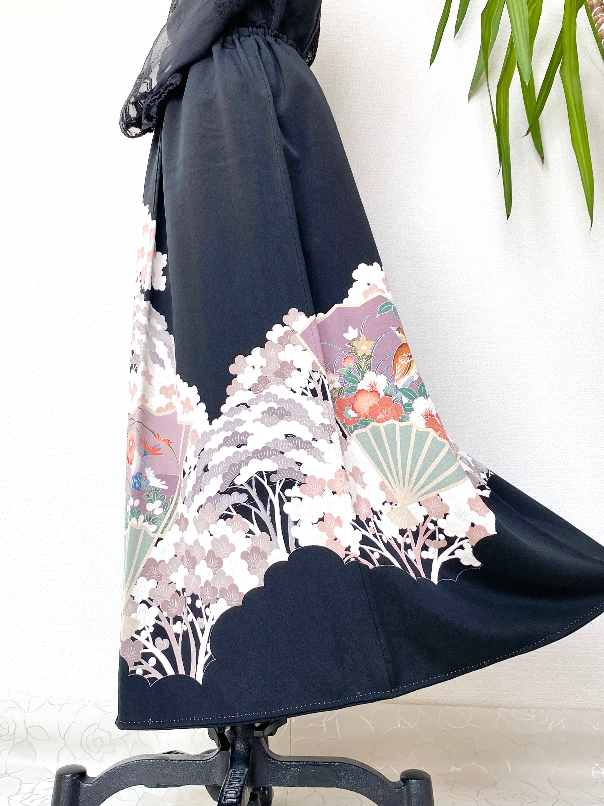 大人可愛いセレブ着物スカートフリーサイズ黒留袖着物リメイクウエストゴムロングスカート