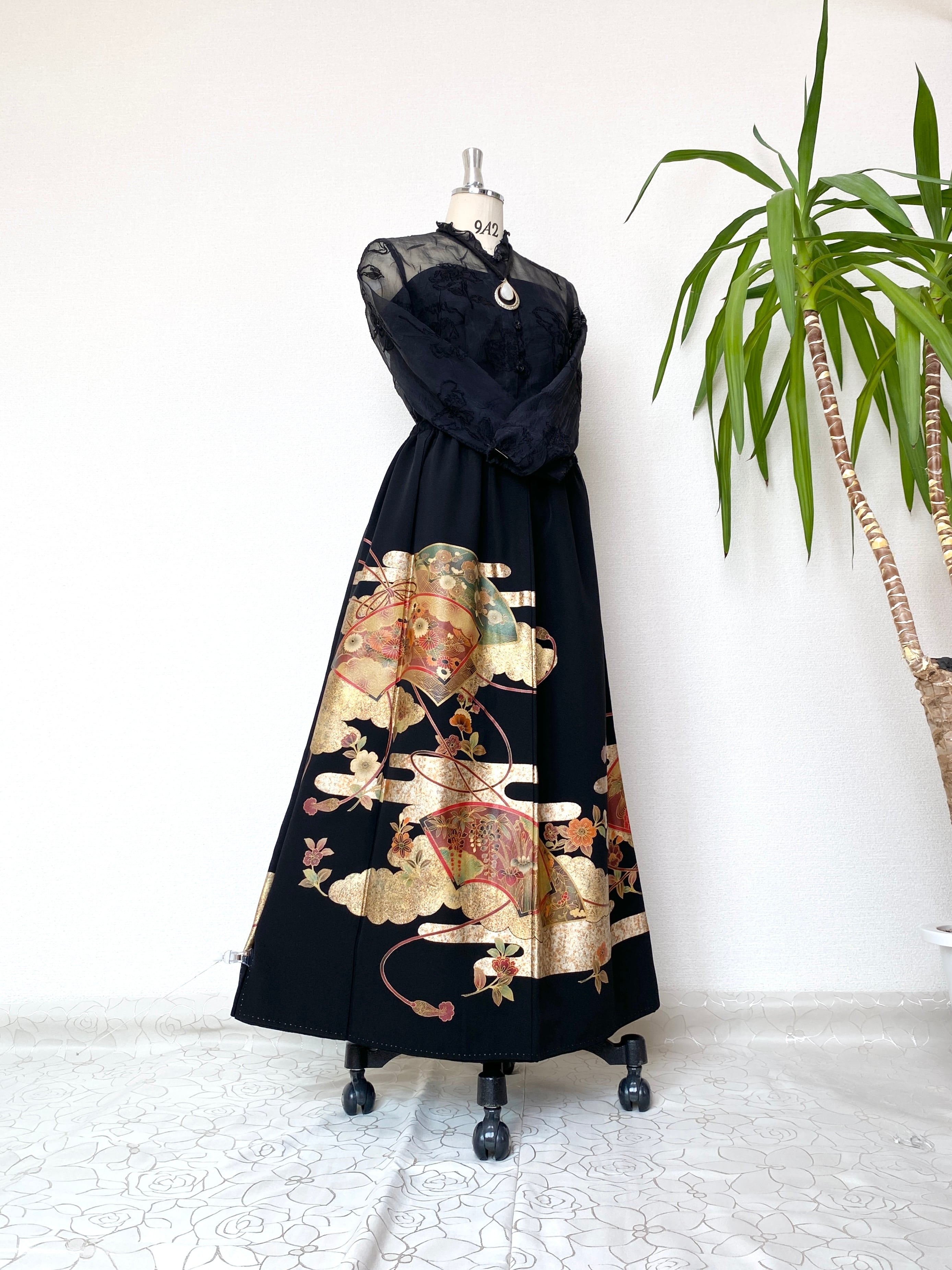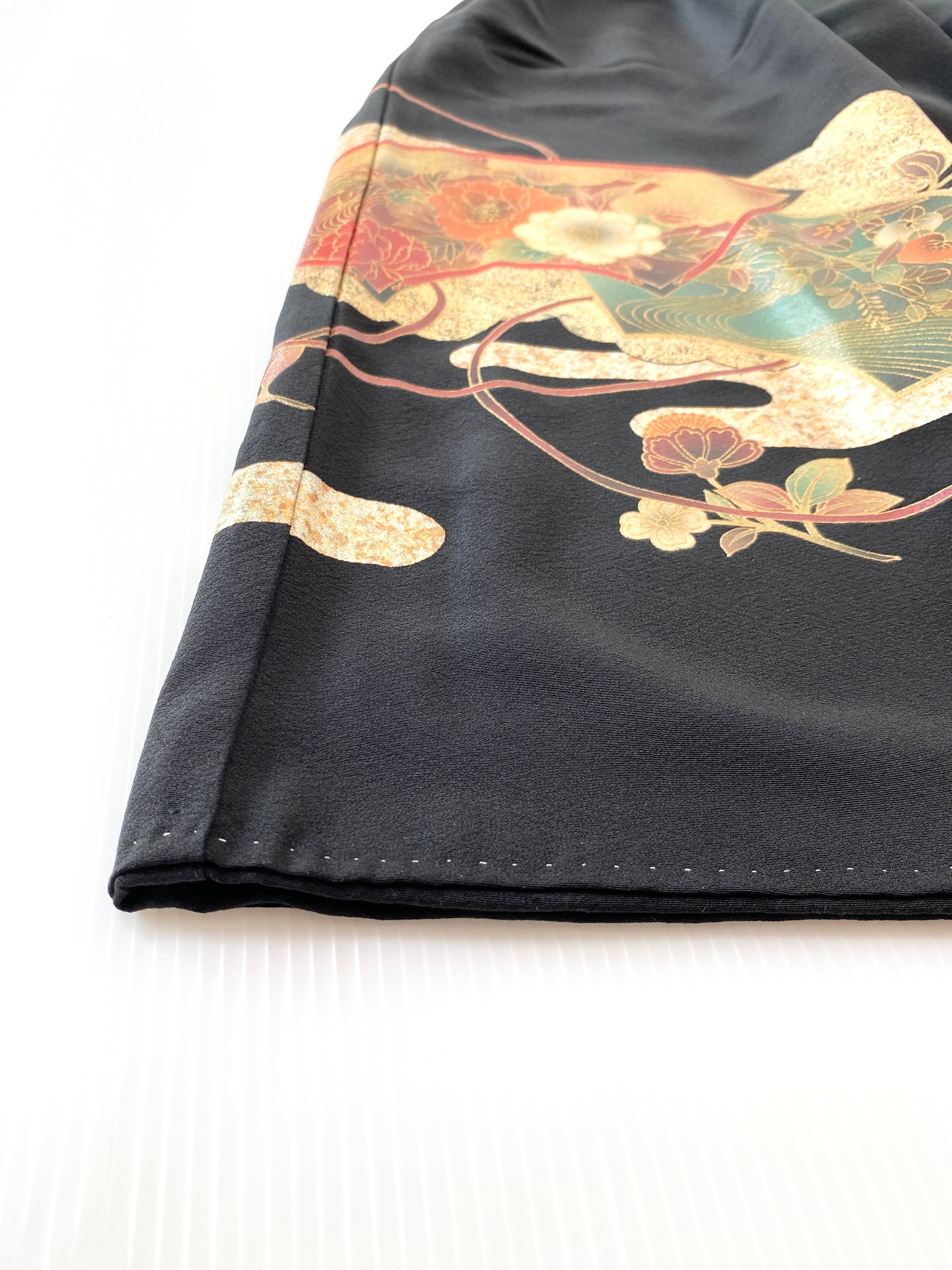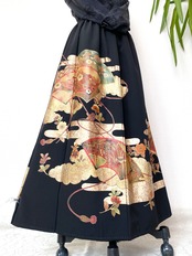 大人可愛いセレブ着物スカートフリーサイズ黒留袖着物リメイクウエストゴムロングスカート