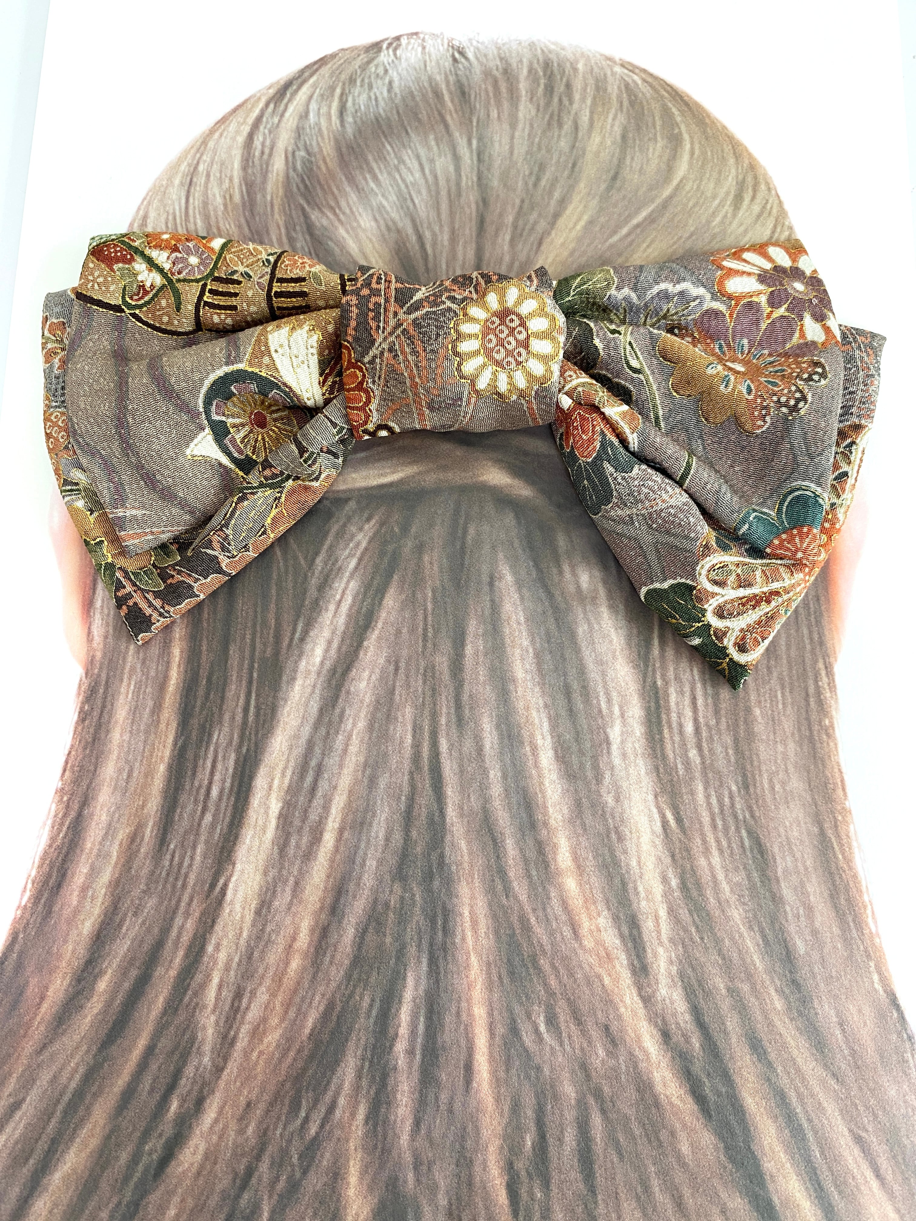 着物をリメイクして製作したヘアアクセサリーリボンコームです
