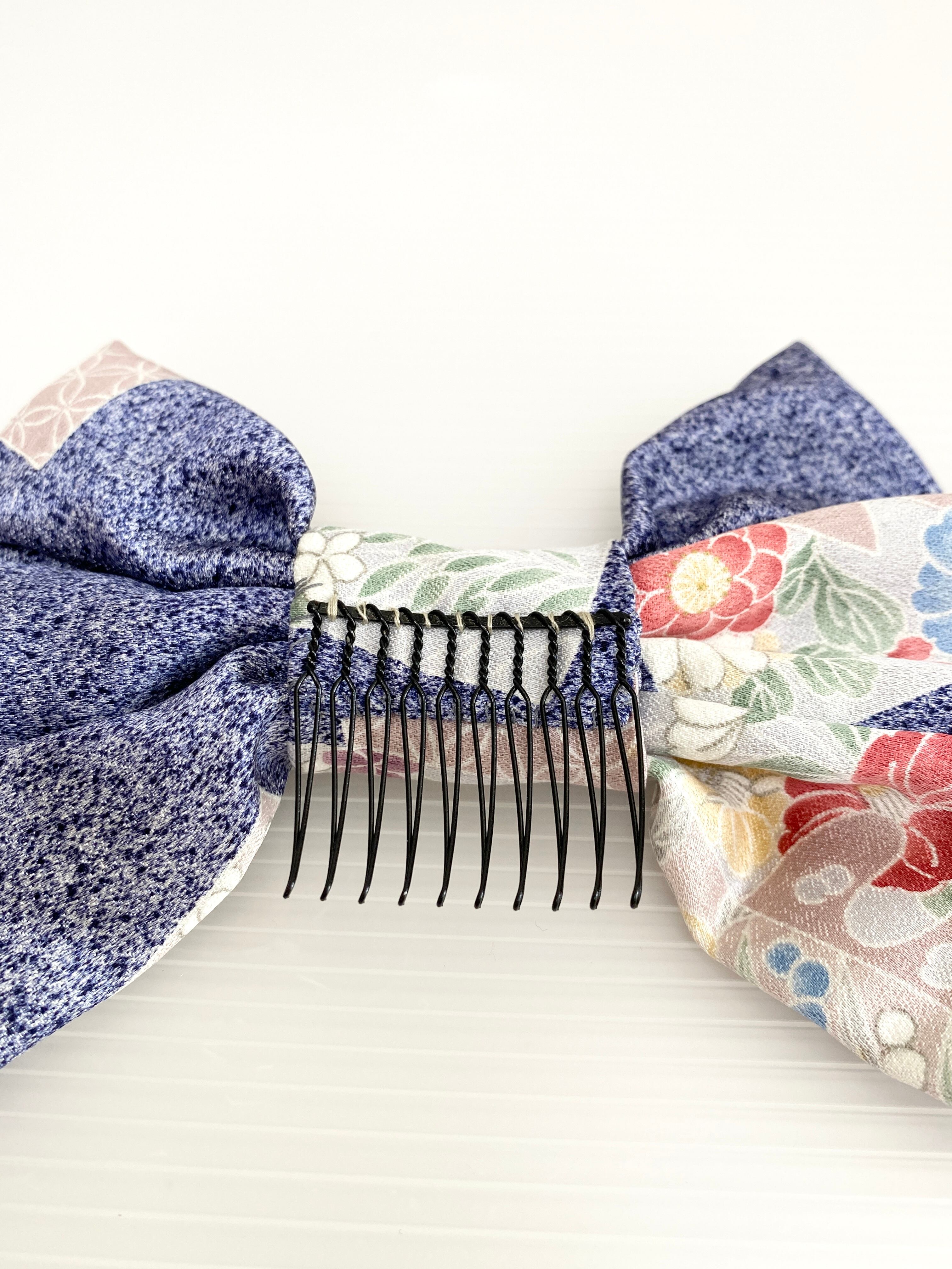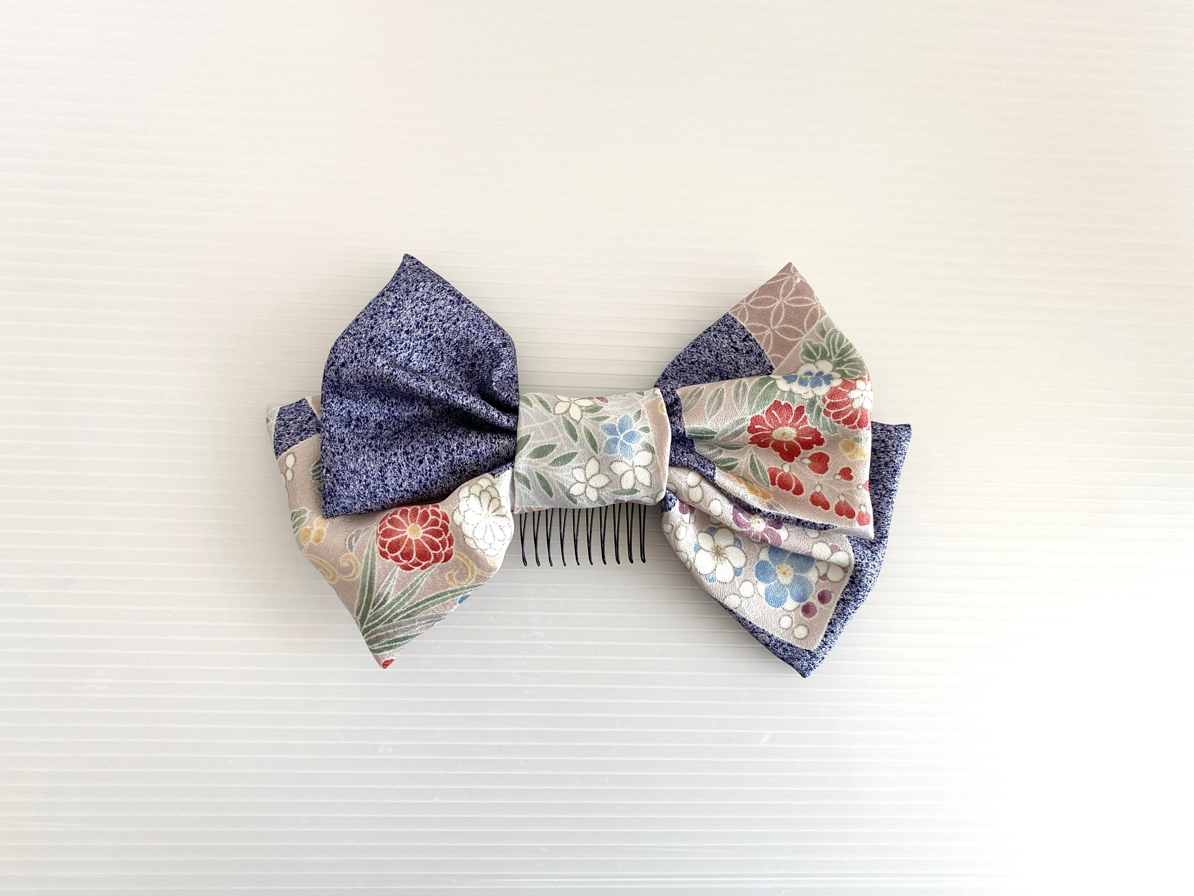 着物をリメイクして製作したヘアアクセサリーリボンコームです