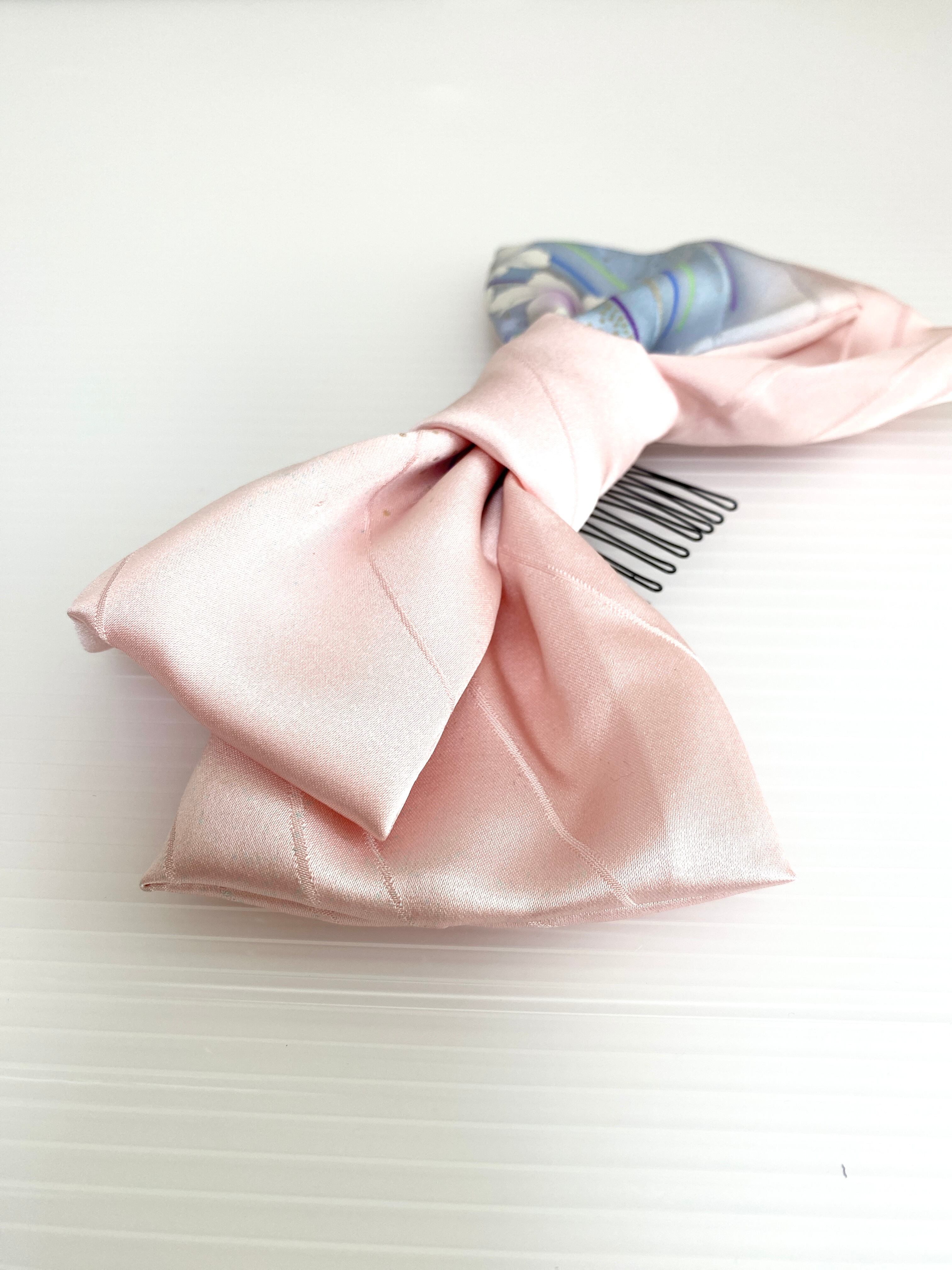 着物をリメイクして製作したヘアアクセサリーリボンコームです