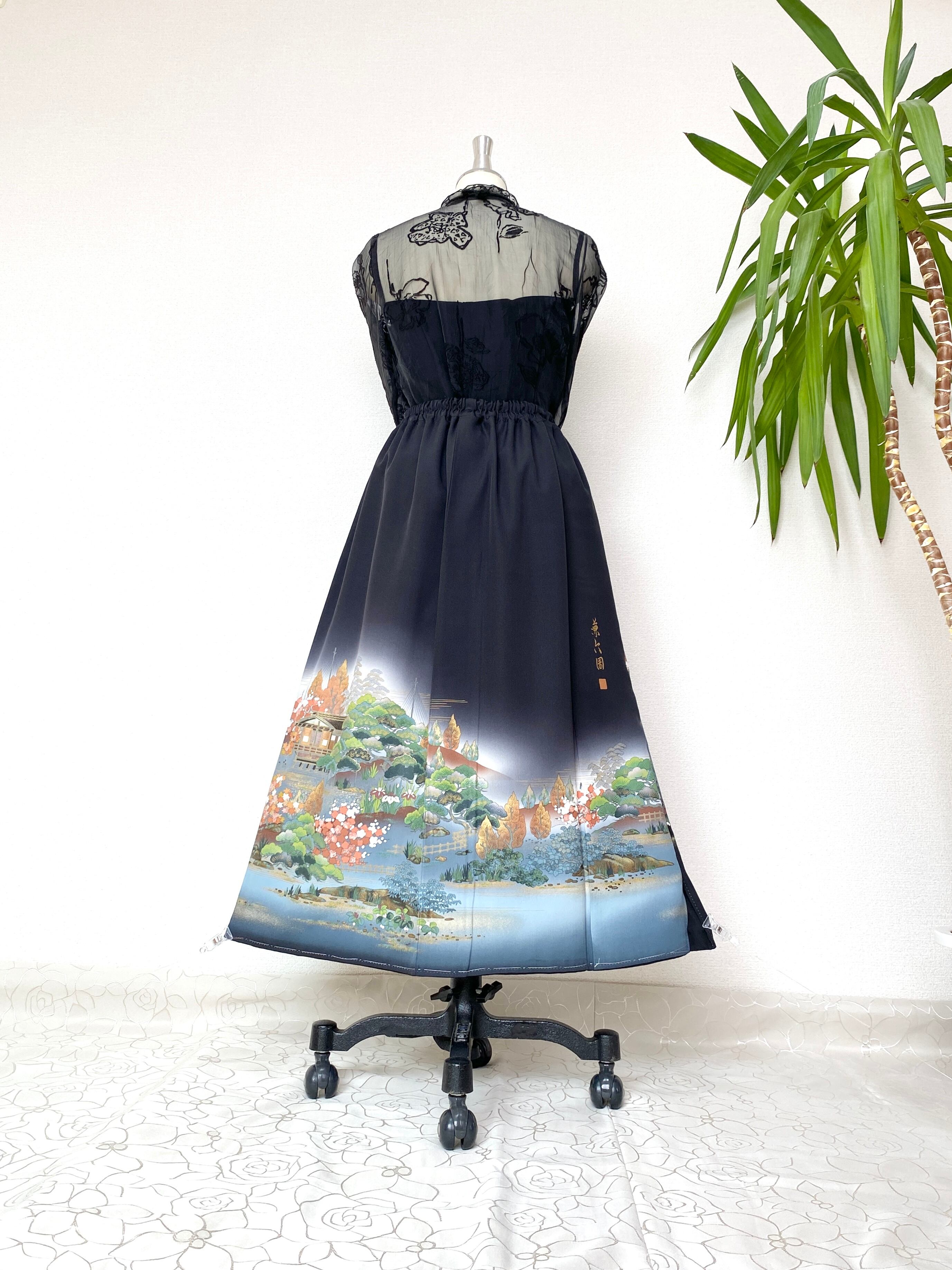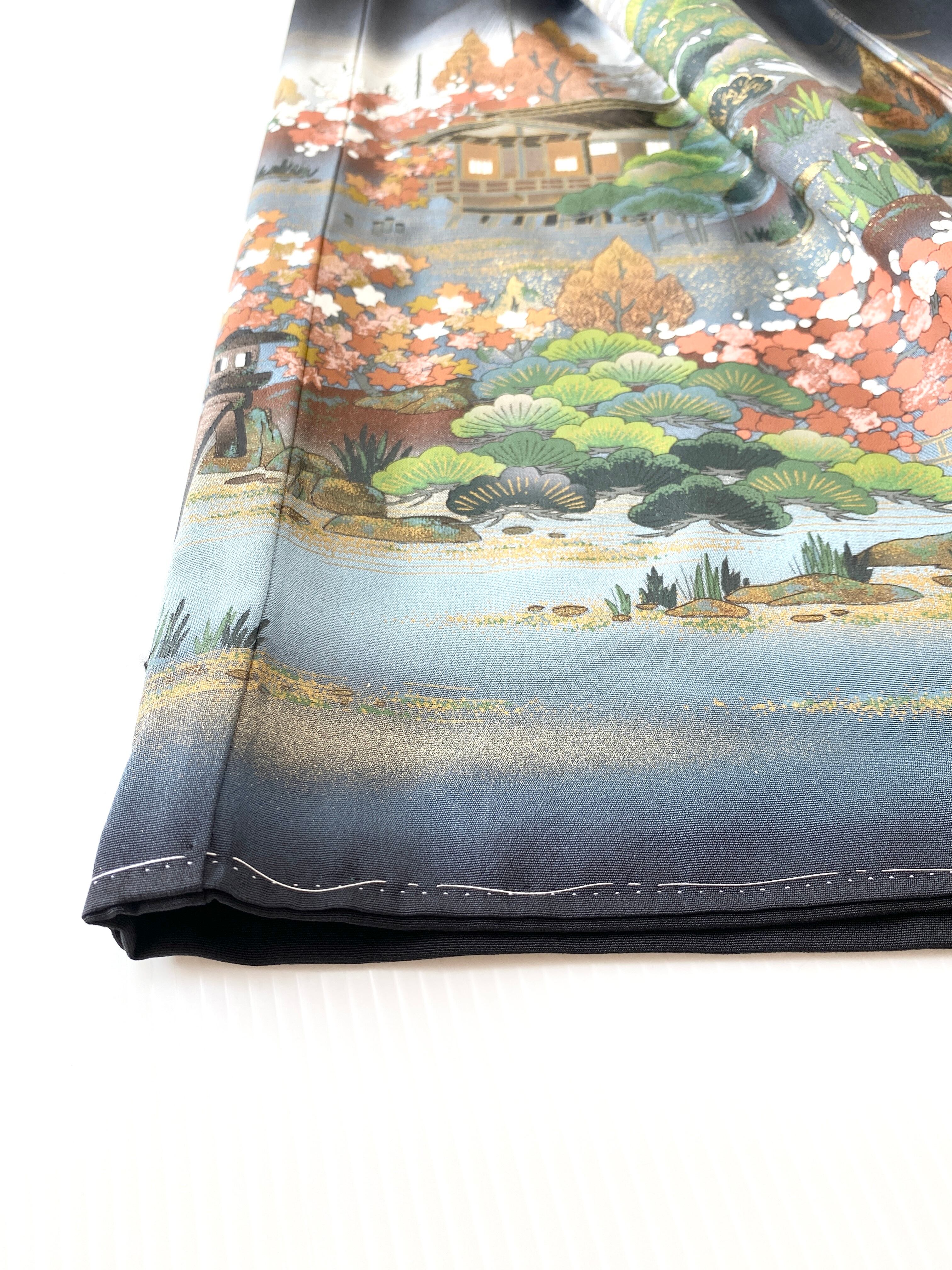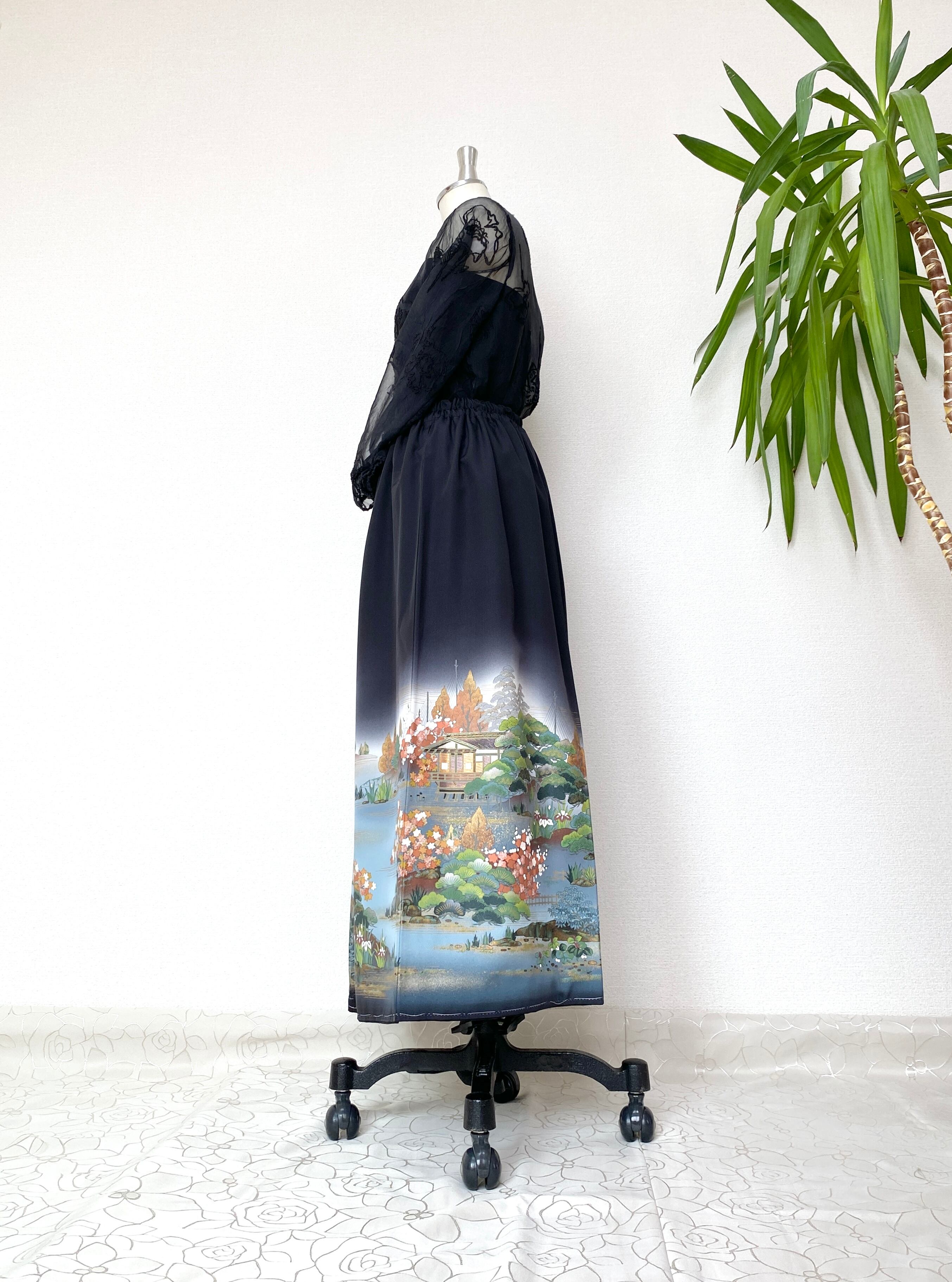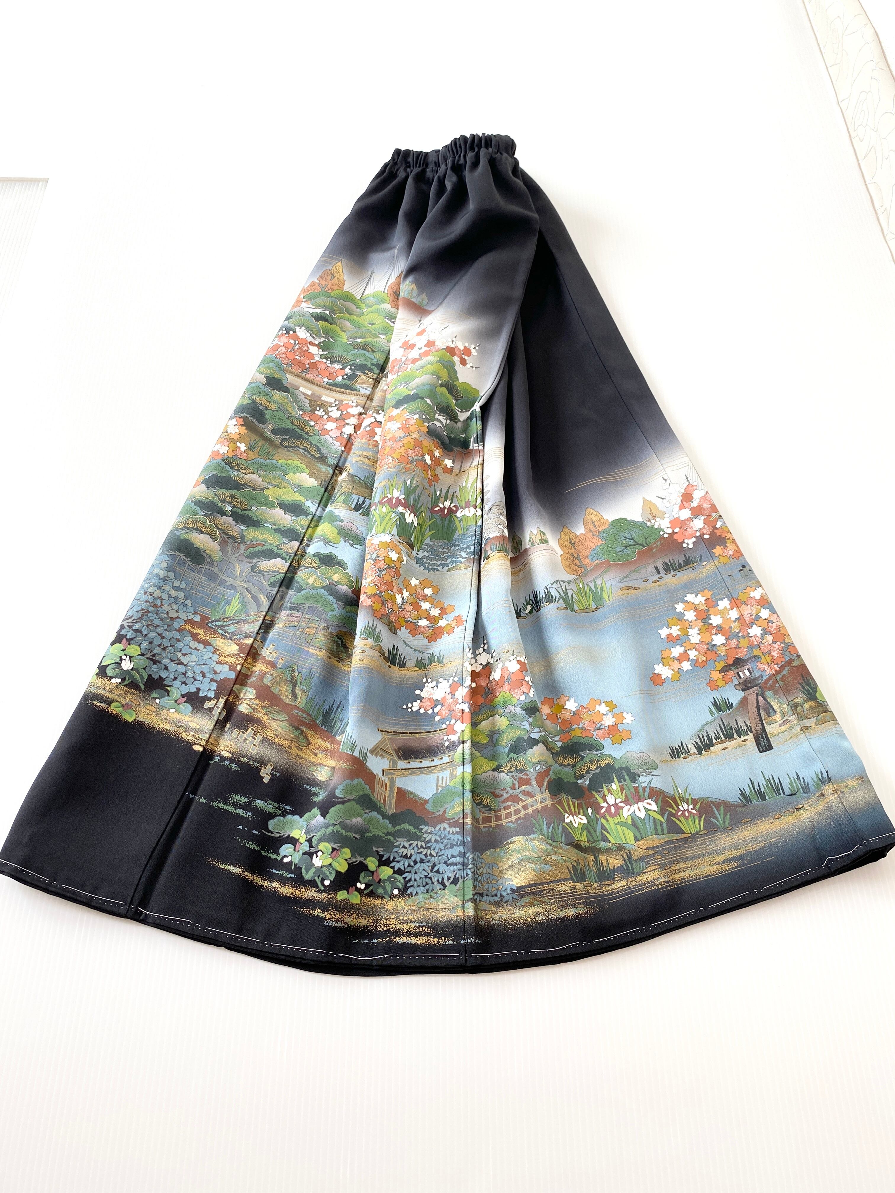 大人可愛いセレブ着物スカートフリーサイズ黒留袖着物リメイクウエストゴムロングスカート