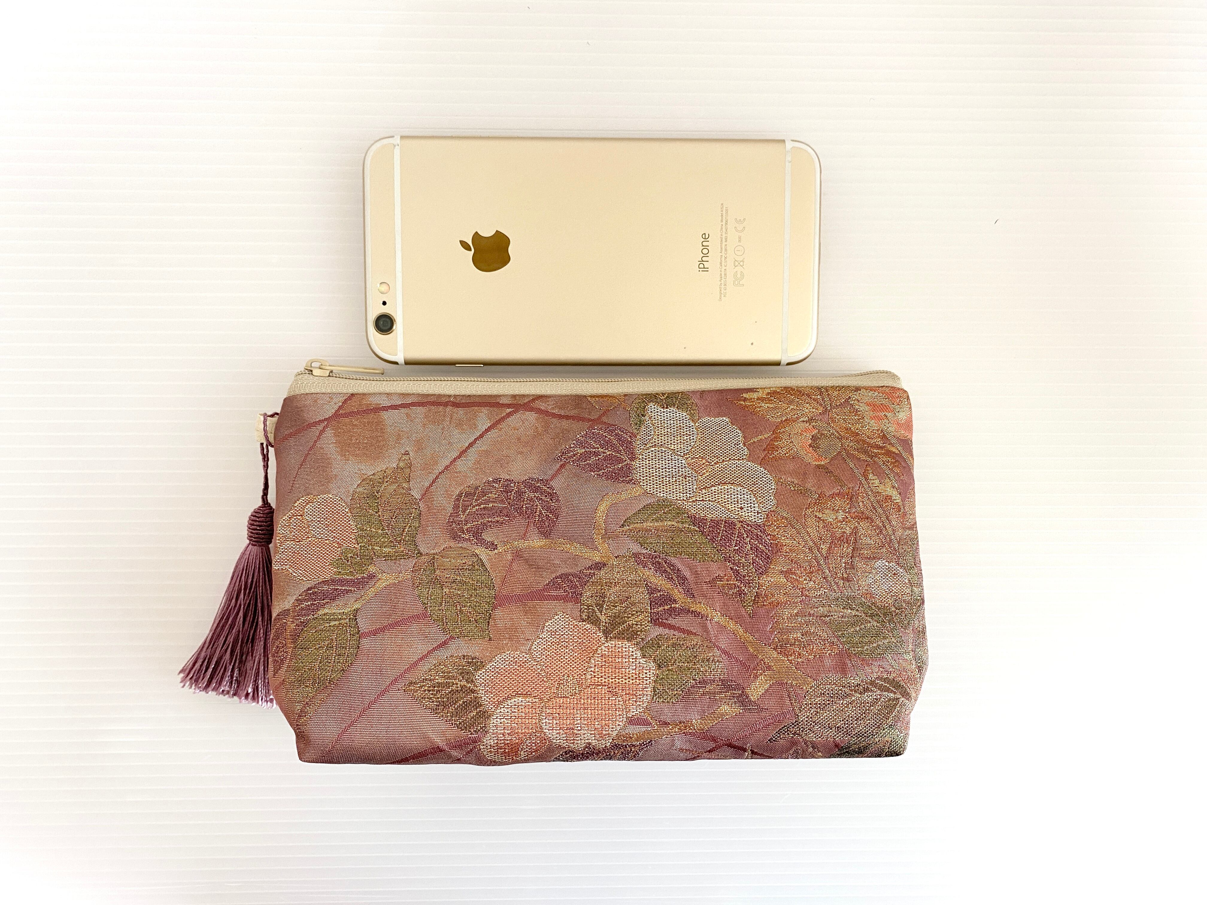 大人可愛いセレブポーチ帯リメイクポーチ化粧ポーチマルチポーチ着物リメイクポーチハンドメイド送料込みNO.5368