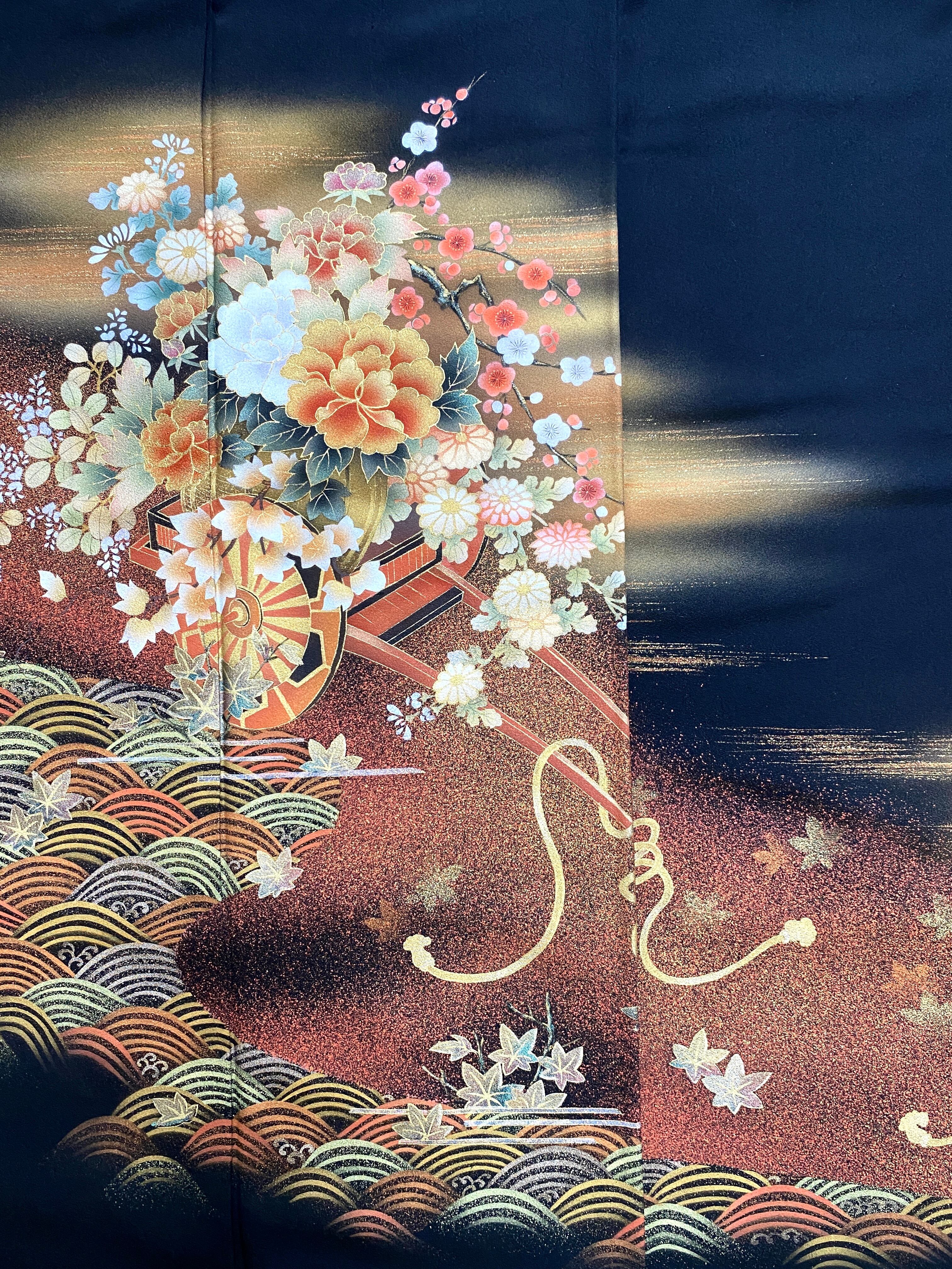 大人可愛いセレブ着物スカート【細身さん用】S~Mサイズフリーサイズ黒留袖着物リメイクウエストゴムロングスカート