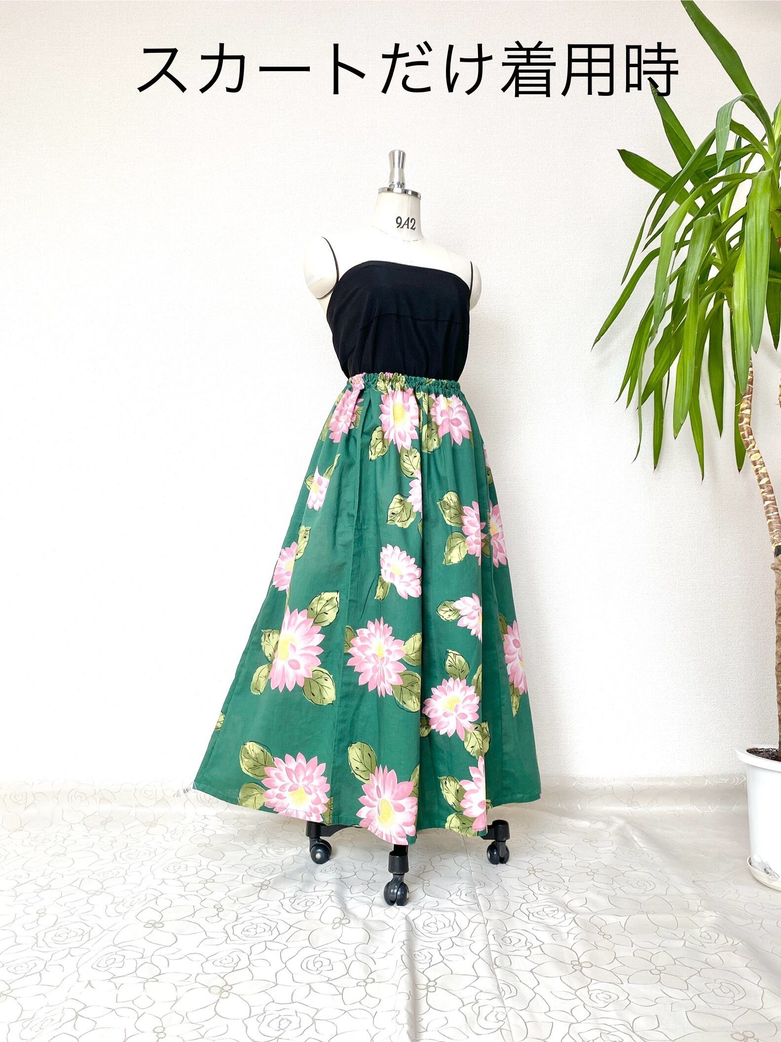 浴衣をリメイクして作製したツーピースのフリーサイズです