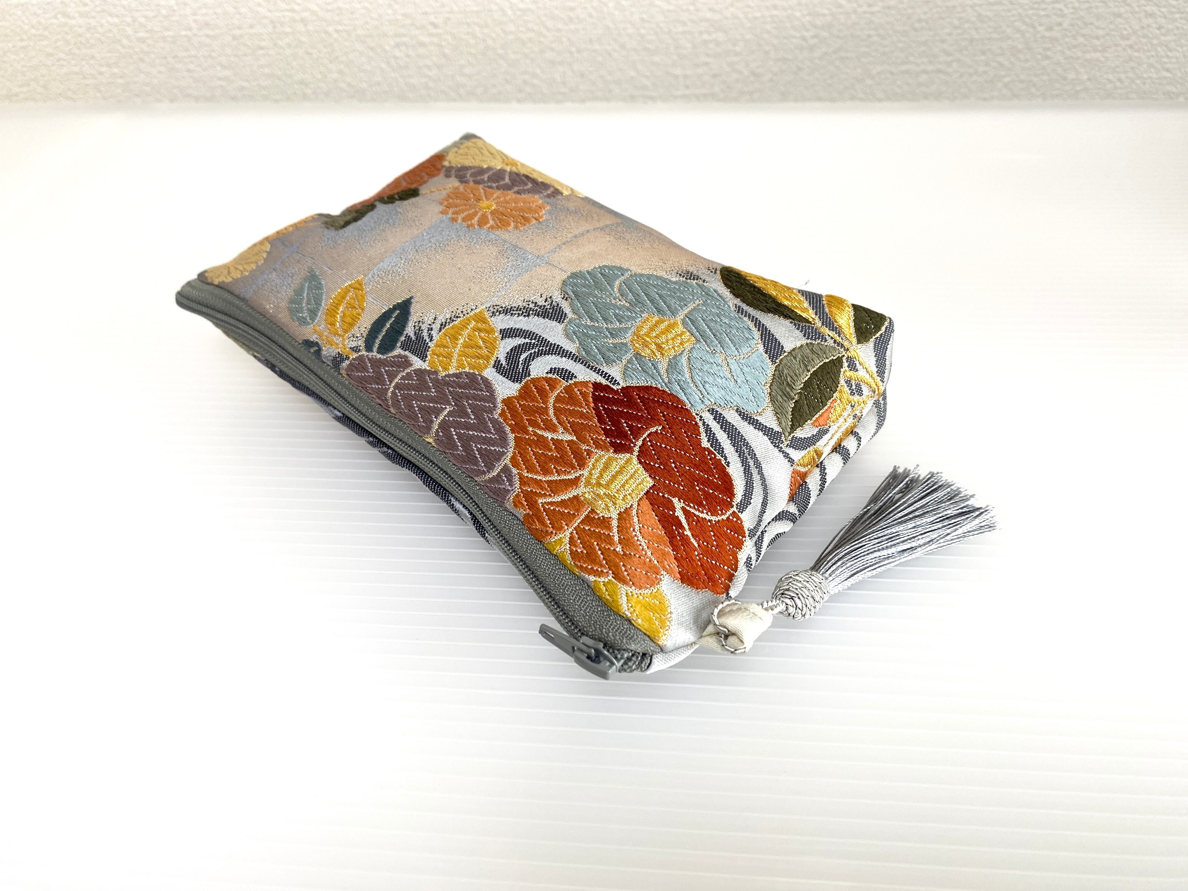 大人可愛いセレブポーチ帯リメイクポーチ化粧ポーチマルチポーチ着物リメイクポーチハンドメイド送料込みNO.5388