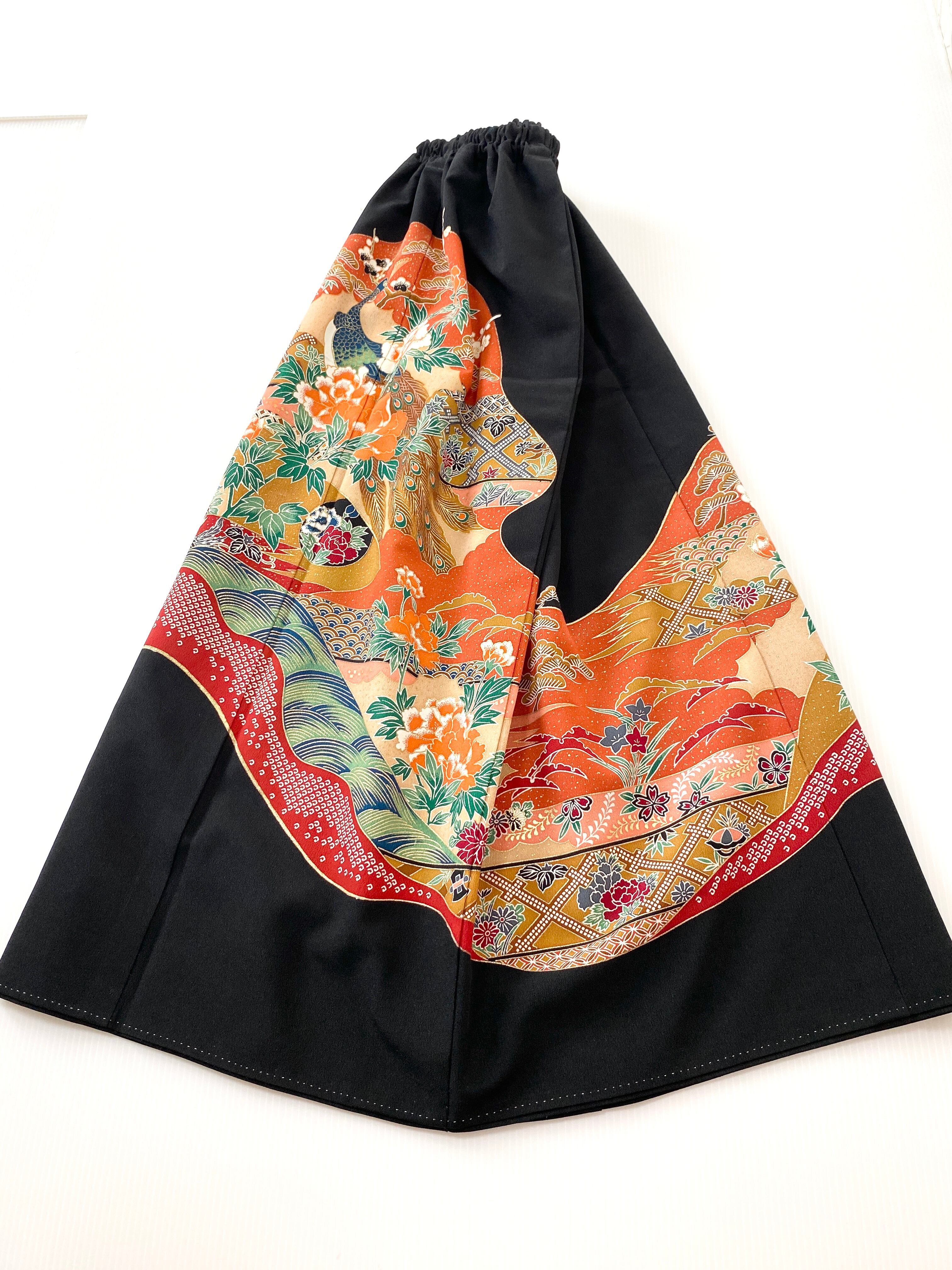 大人可愛いセレブ着物スカートフリーサイズ黒留袖着物リメイクウエストゴムロングスカート送料込みハンドメイドNO.5500