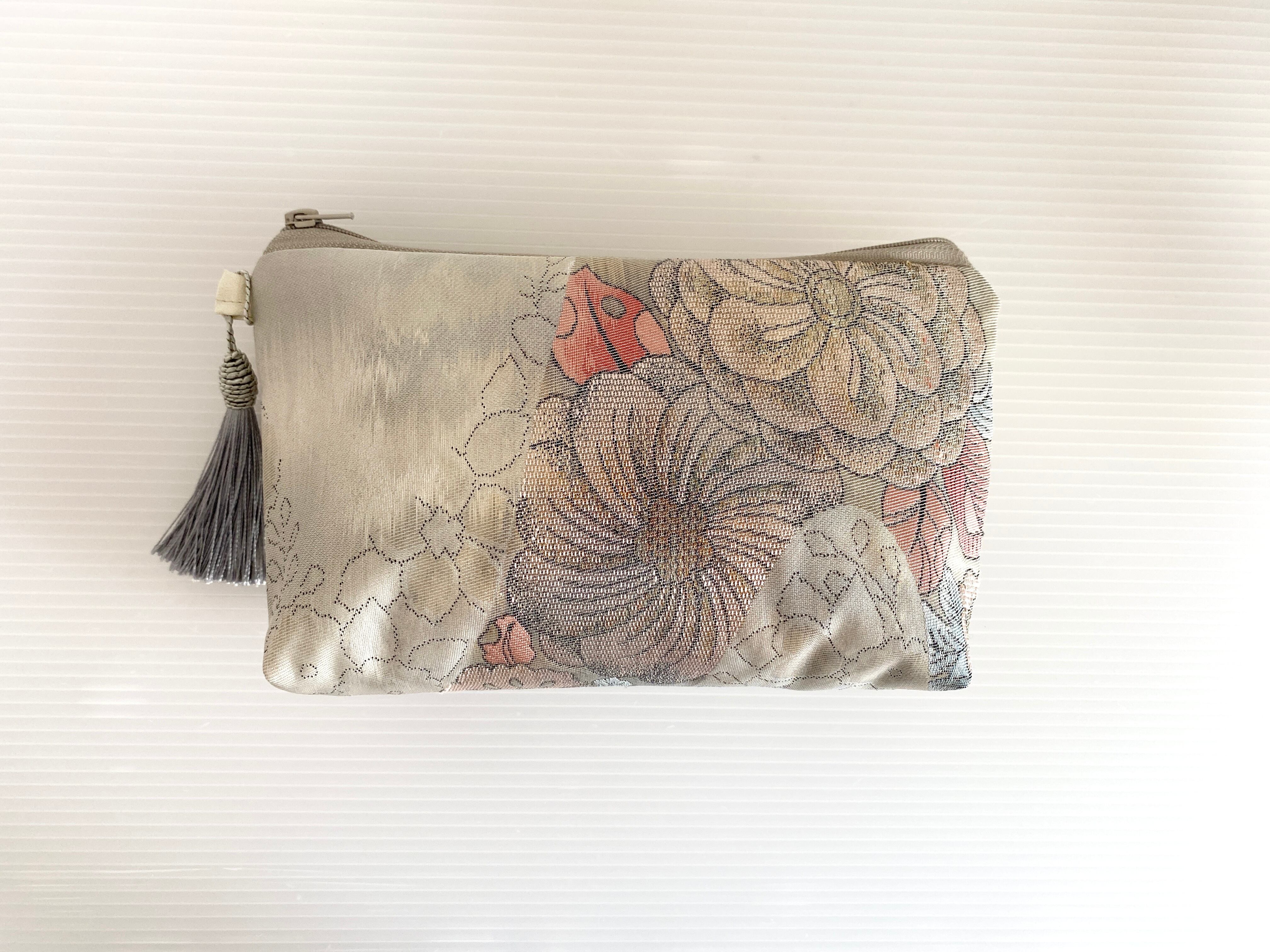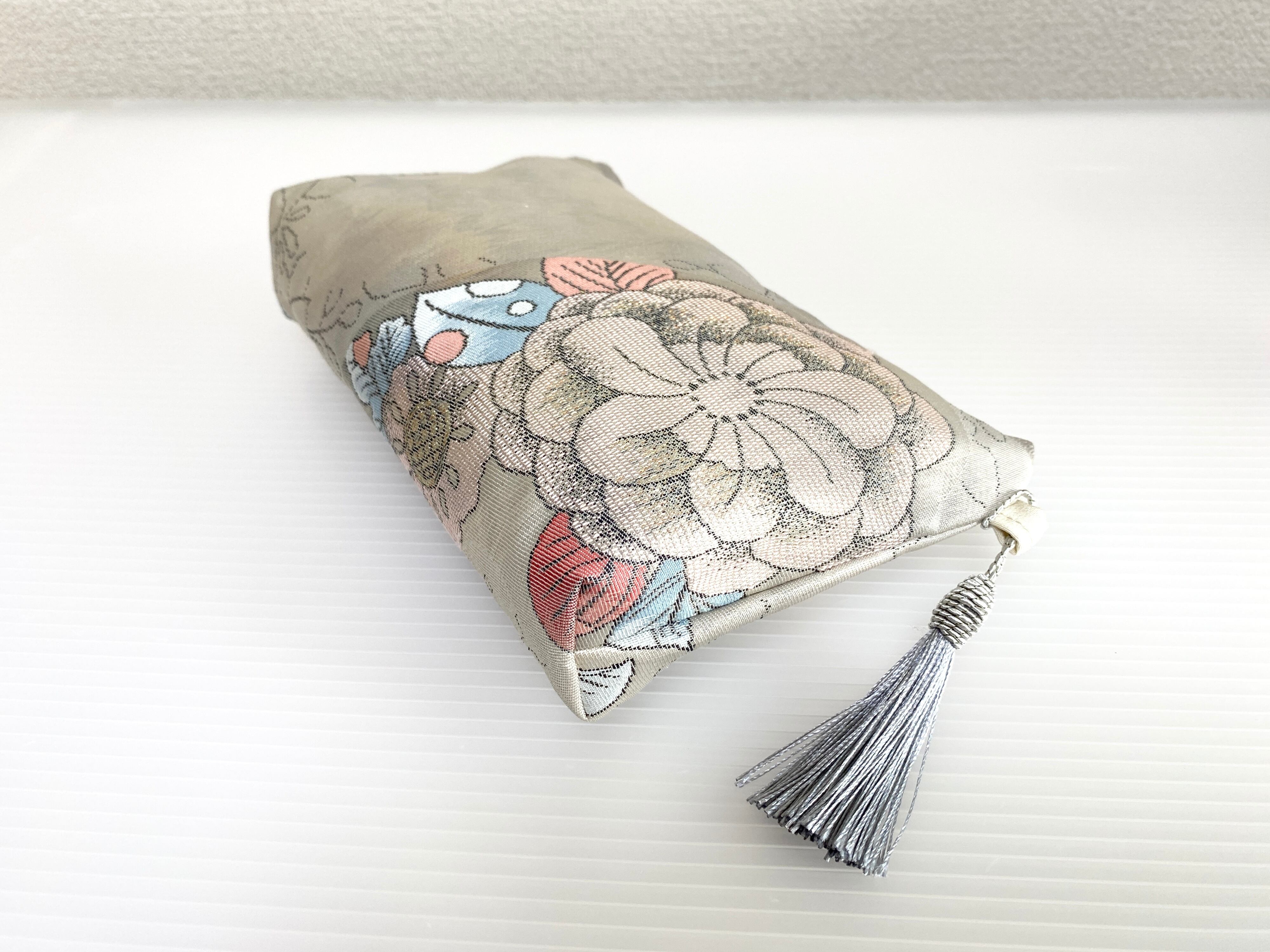 大人可愛いセレブポーチ帯リメイクポーチ化粧ポーチマルチポーチ着物リメイクポーチハンドメイド送料込みNO.5508