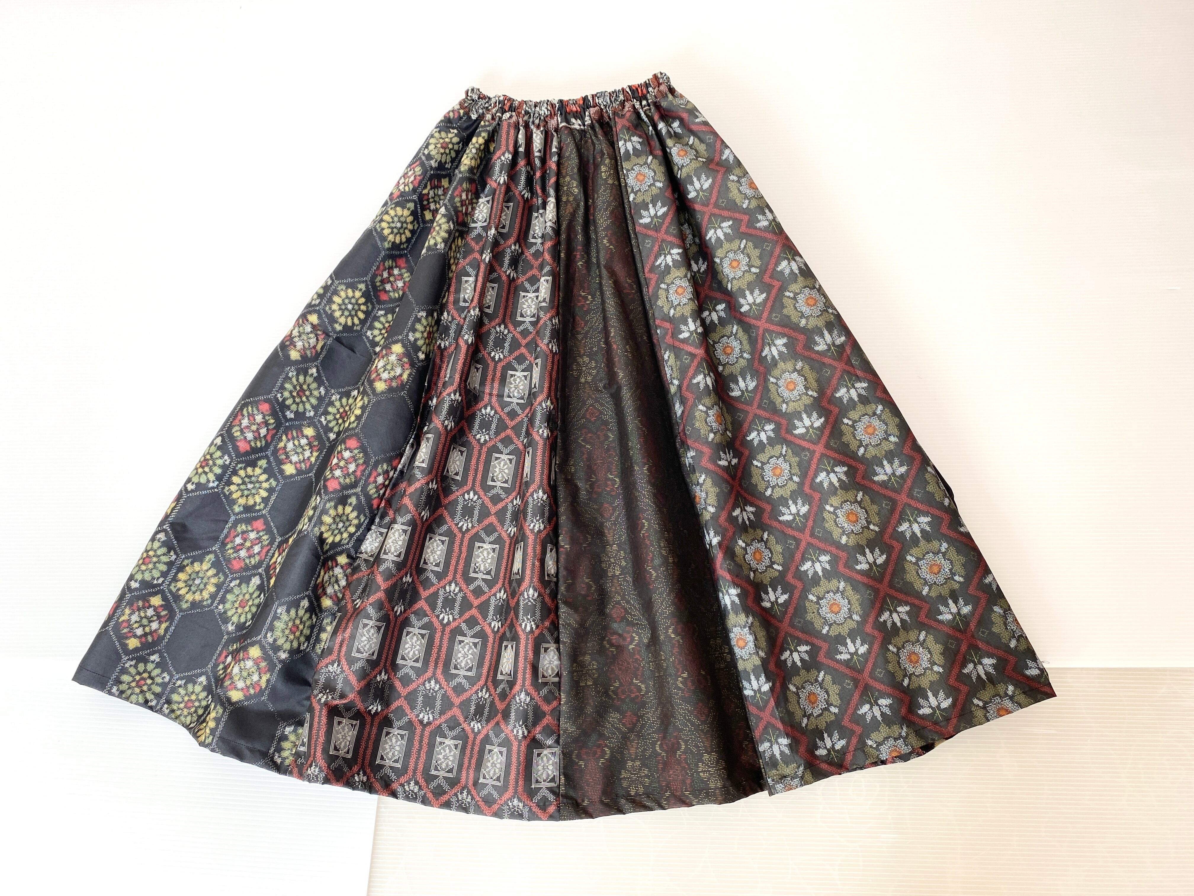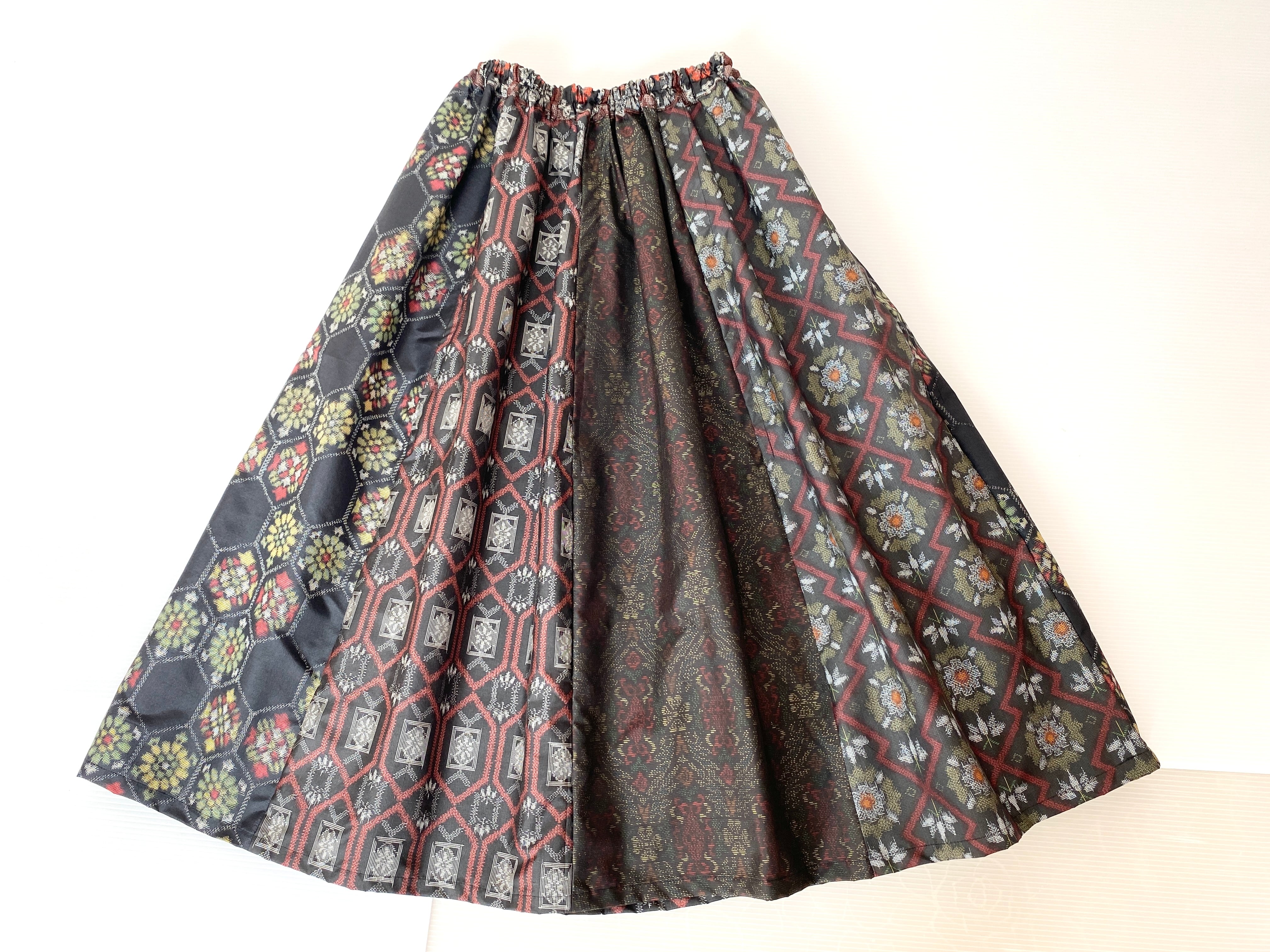 大人可愛いセレブ大島紬着物リメイクウエストゴムロングスカートフリーサイズ
