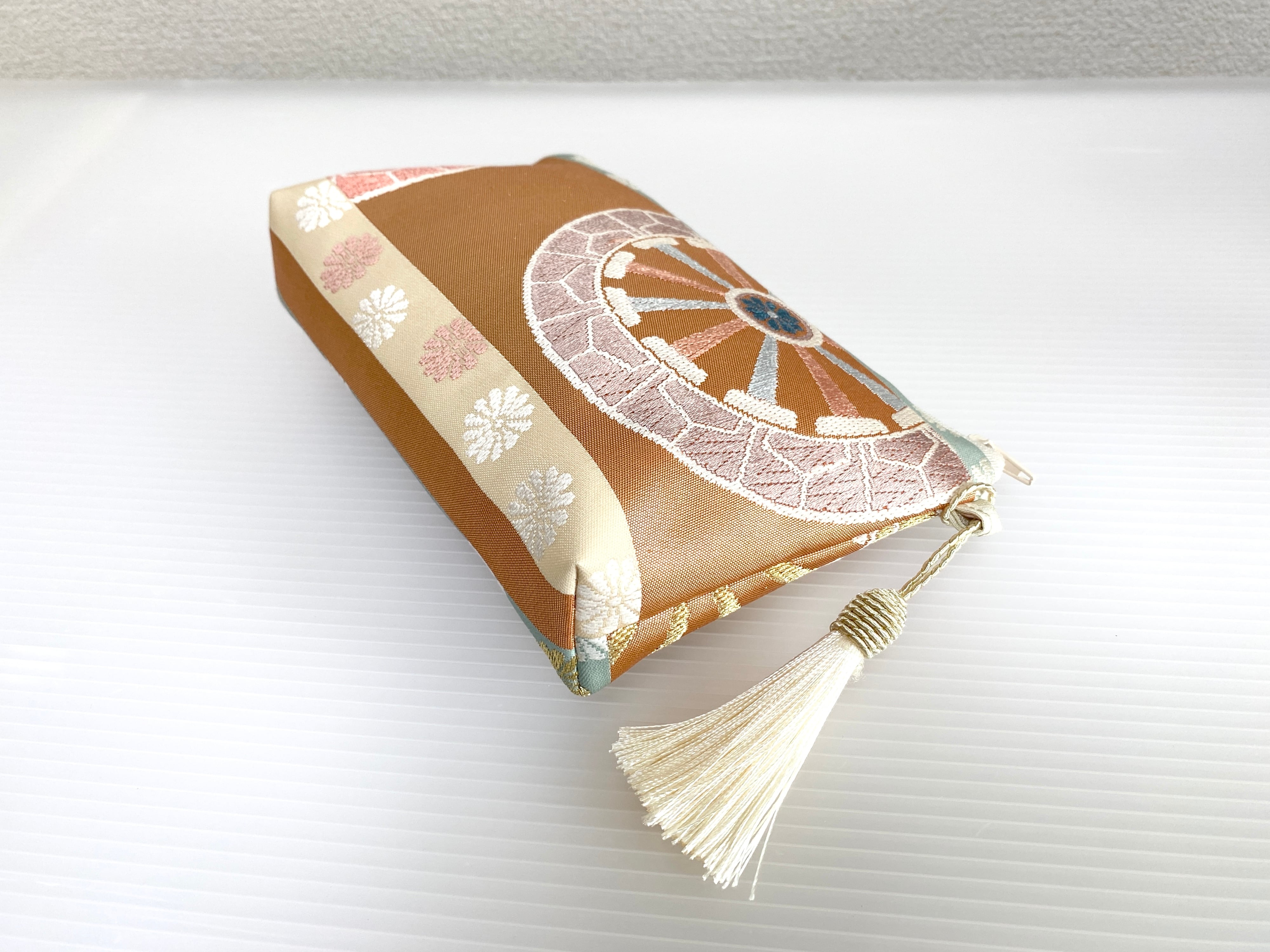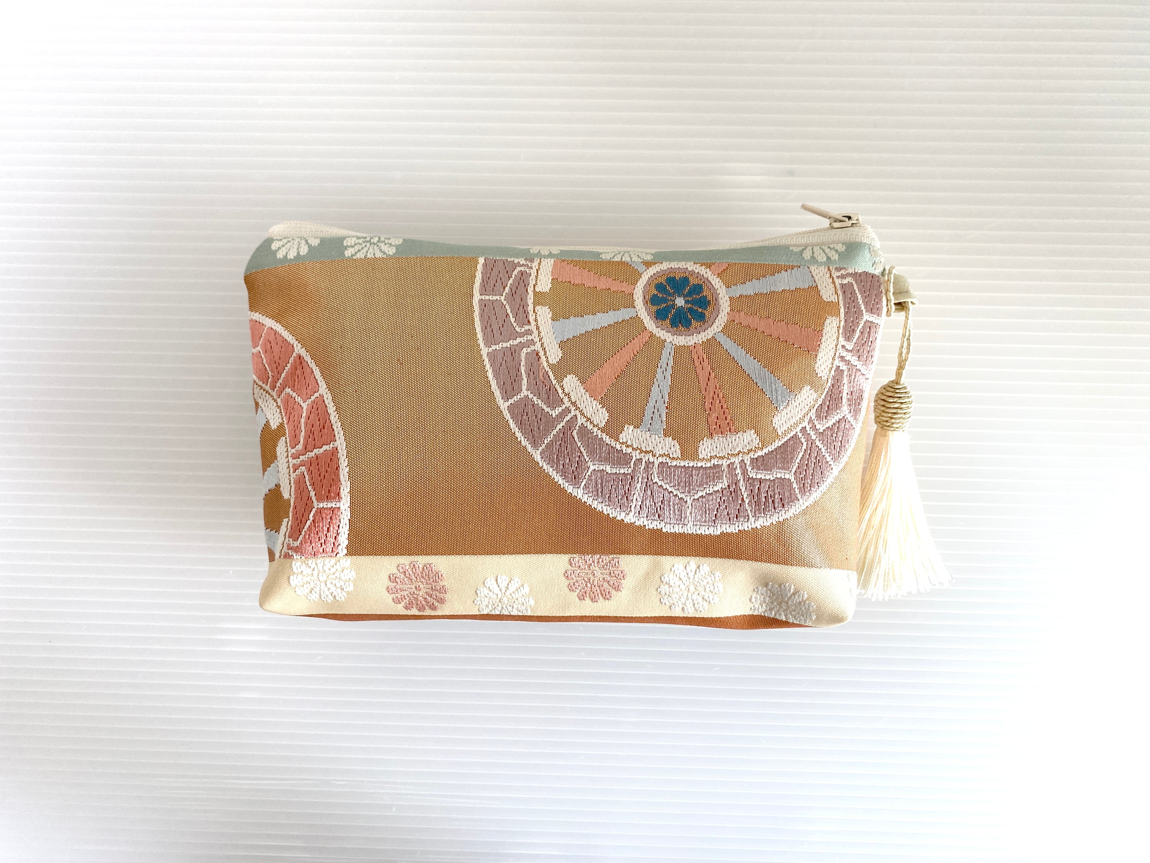 日本の古着物帯をリメイクして作製したポーチでハンドメイド品です