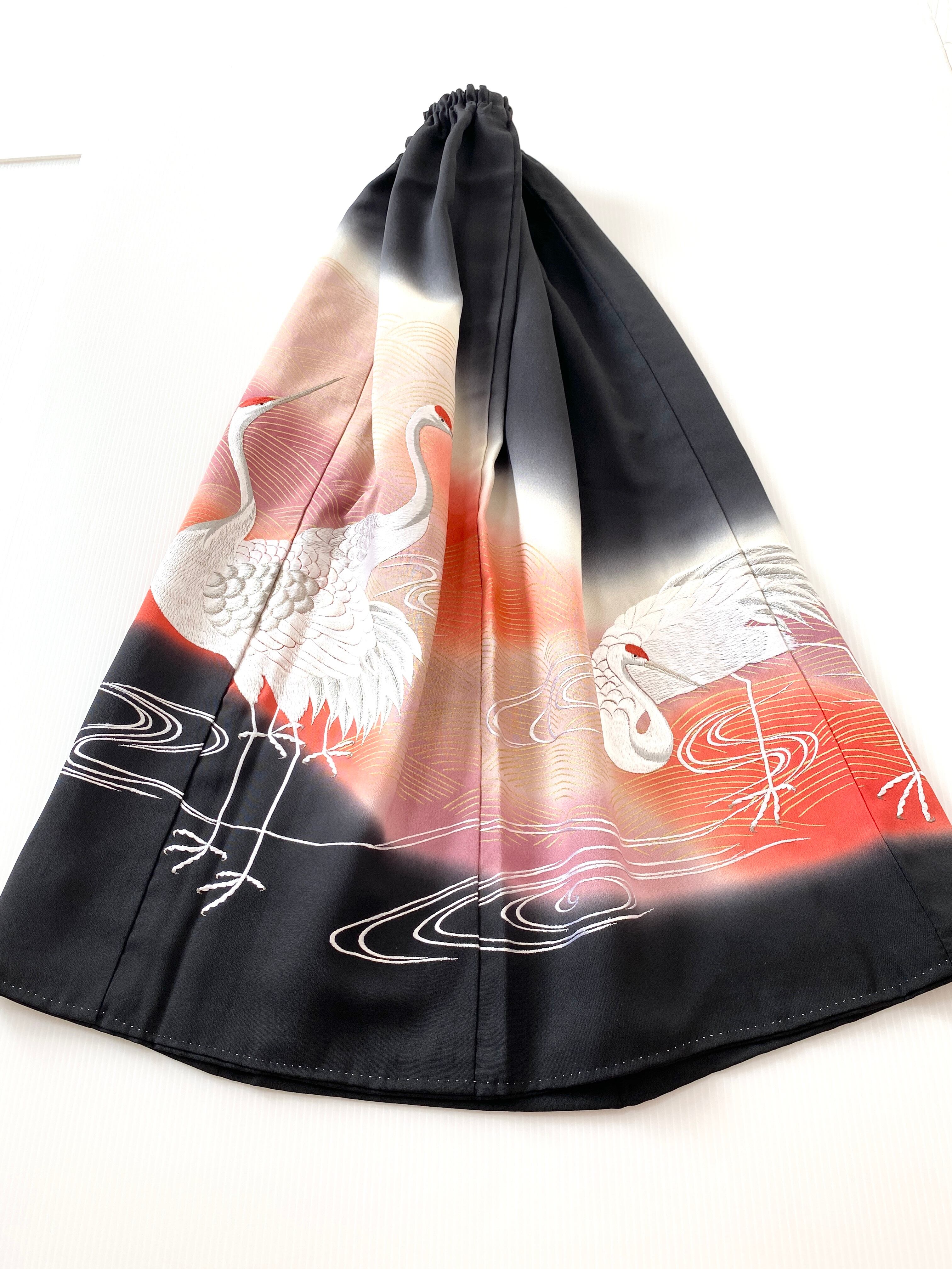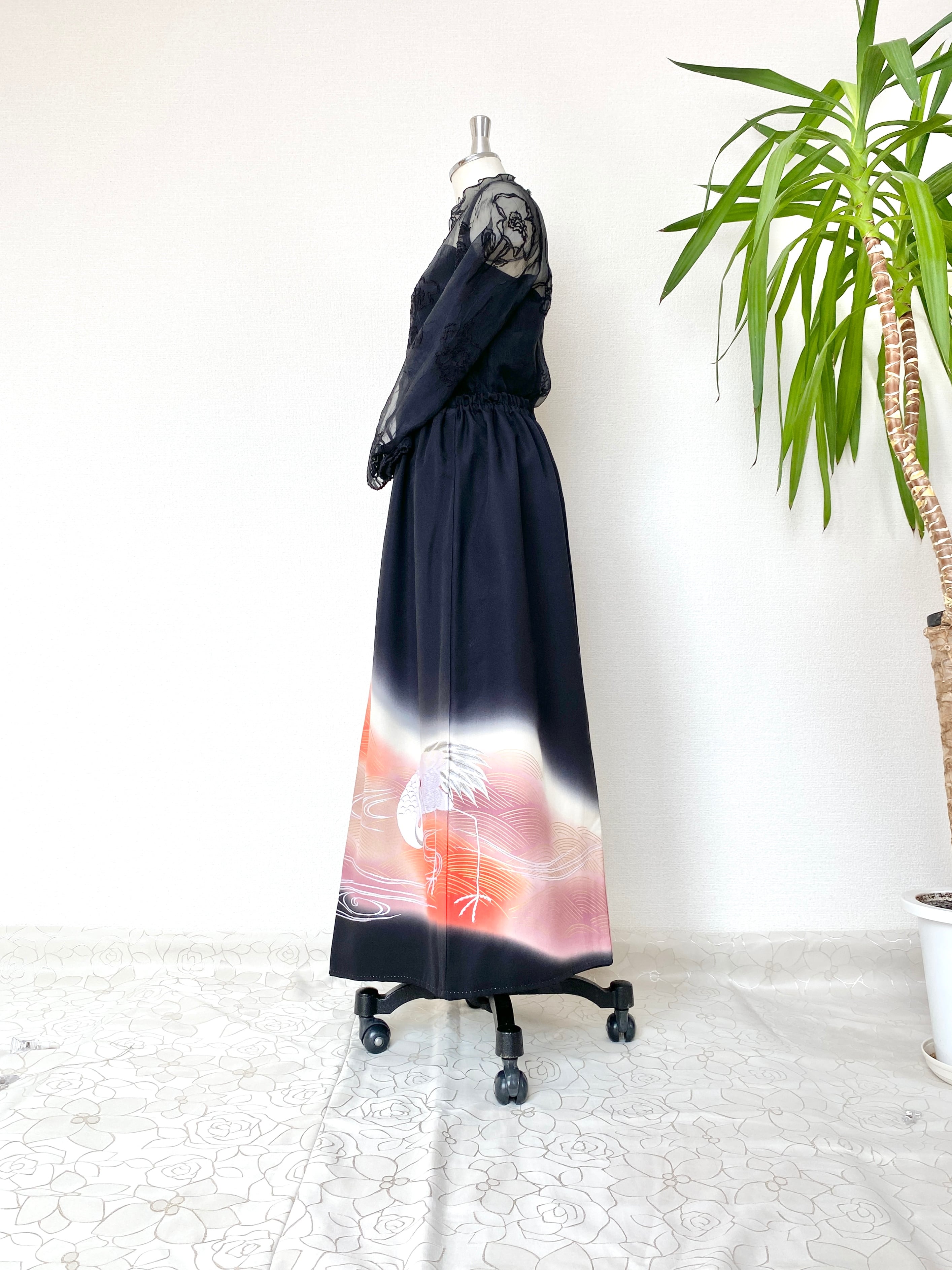 黒留袖着物をリメイクして作製したウエストゴムロングドレススカートフリーサイズです