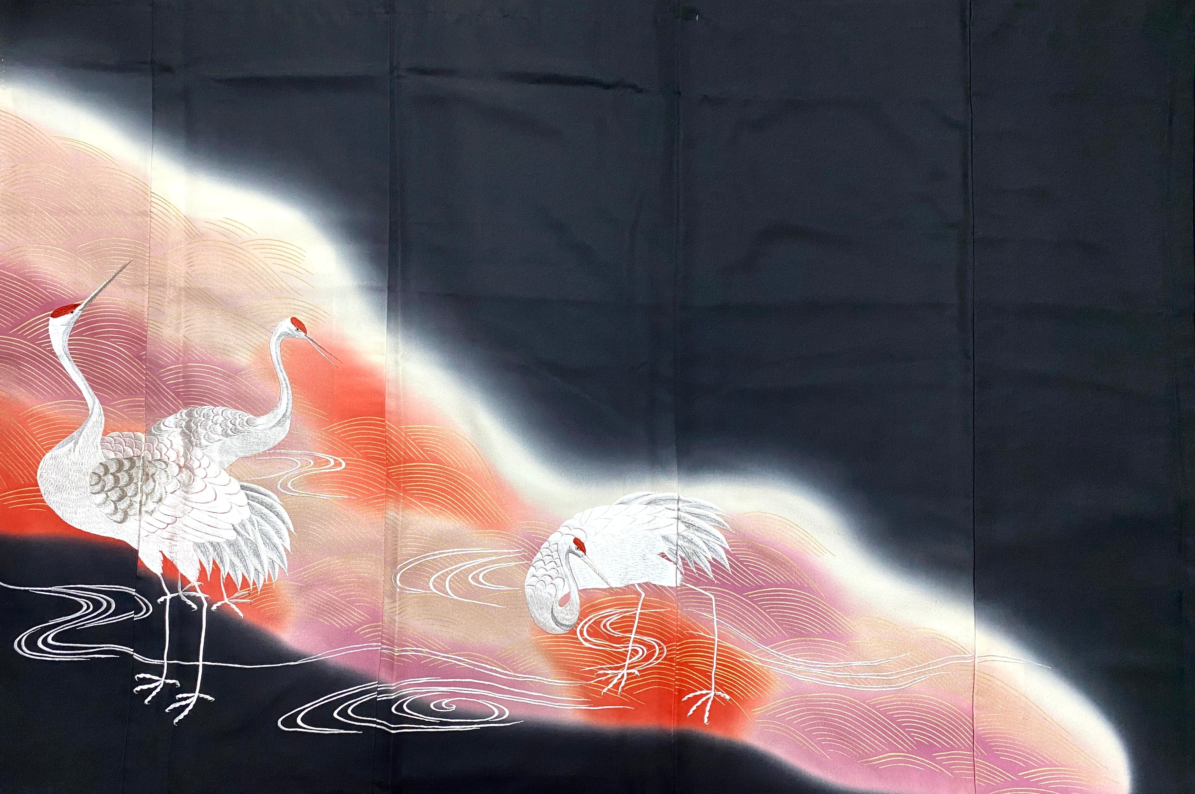 大人可愛いセレブ着物スカートフリーサイズ黒留袖着物リメイクウエストゴムロングスカート