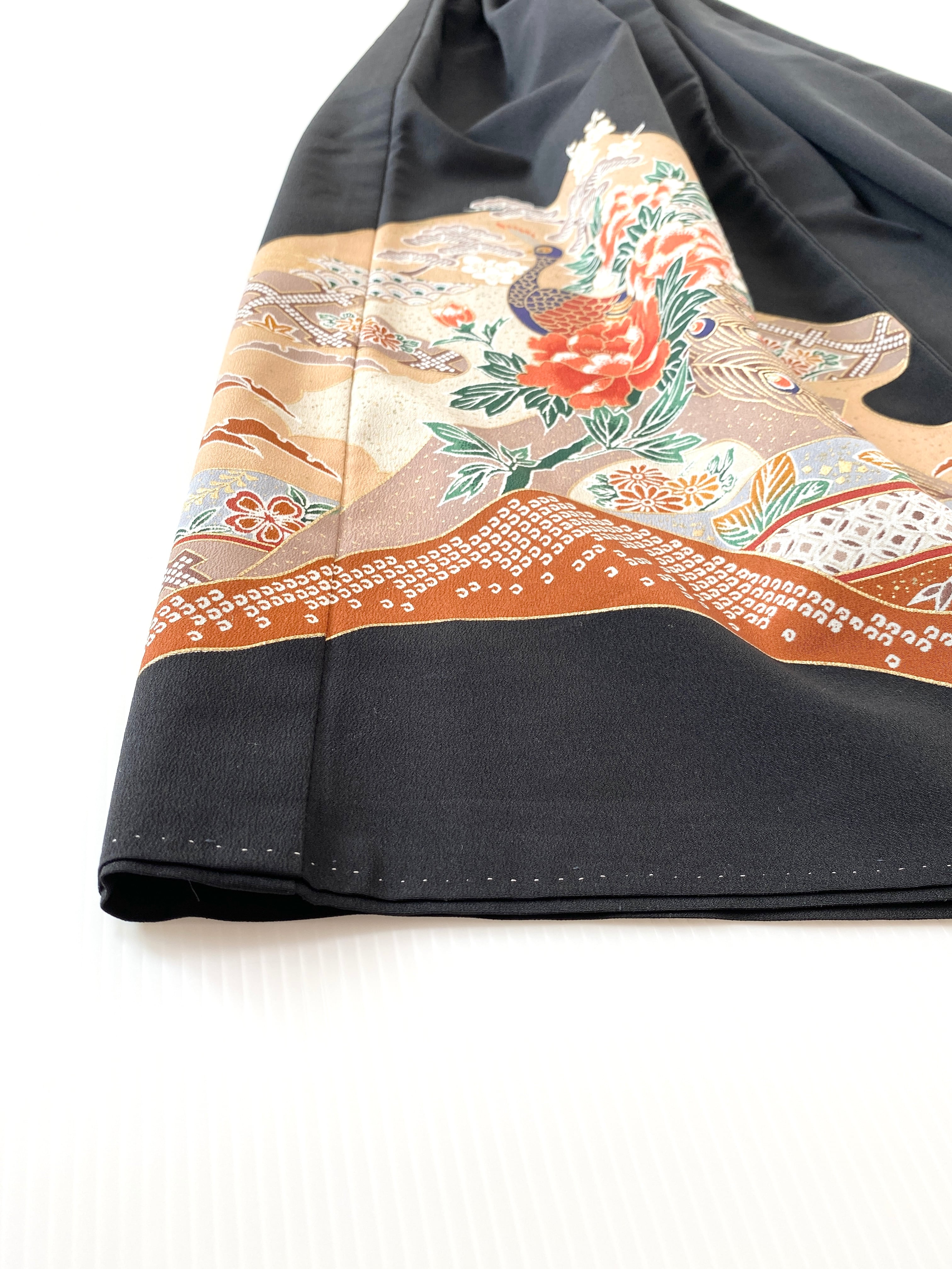 大人可愛いセレブ着物スカートフリーサイズ黒留袖着物リメイクウエストゴムロングスカート